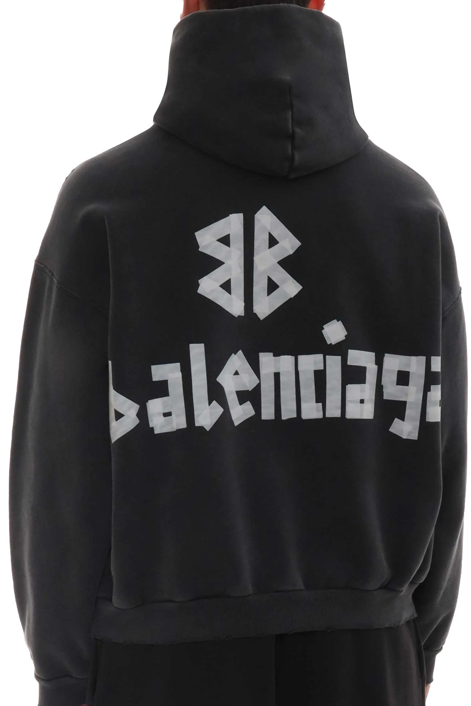 Худи Tape Type Oversize из черного винтажного флиса Archetype — оверсайз-фит с характером. Крупный логотип в виде ленты спереди и сзади, эффект искусственной потертости, капюшон без шнурка и карман-кенгуру делают его одновременно дерзким и комфортным. Унисекс-модель с расслабленной посадкой и спущенными плечами.