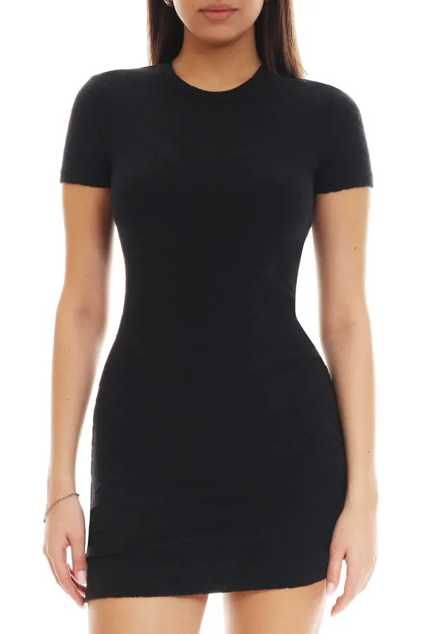 ПЛАТЬЕ ЧЁРНОЕ В ВЫБИТОЕ ЛОГО, КОРОТКОЕ, К/РУК.