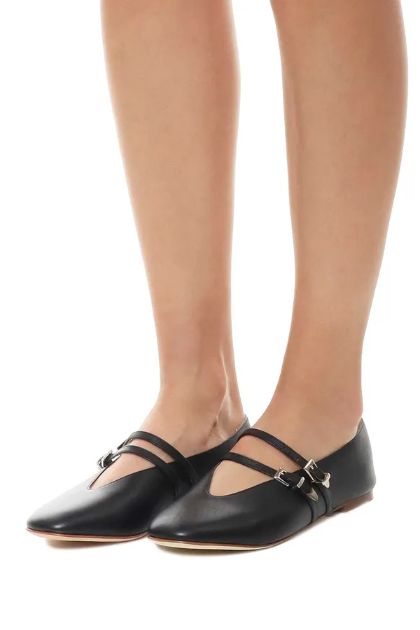 ТУФЛИ-БАЛЕТКИ М.2003 ЧЁРНЫЕ КОЖА, 2 РЕМЕШКА С СЕРЕБРИСТОЙ ПРЯЖКОЙ, К=0,8