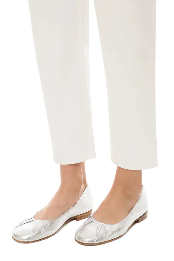 ТУФЛИ-БАЛЕТКИ M.4300 СЕРЕБРИСТЫЕ КОЖА, СКЛАДКИ НА НОСУ, К=1,5