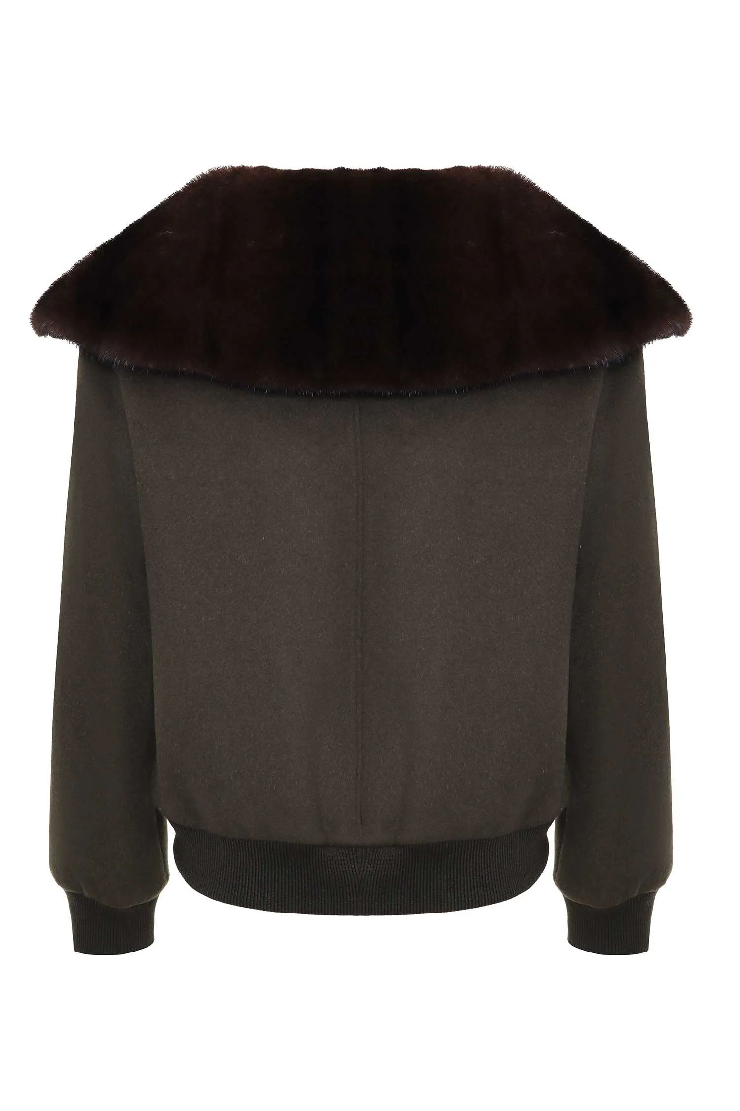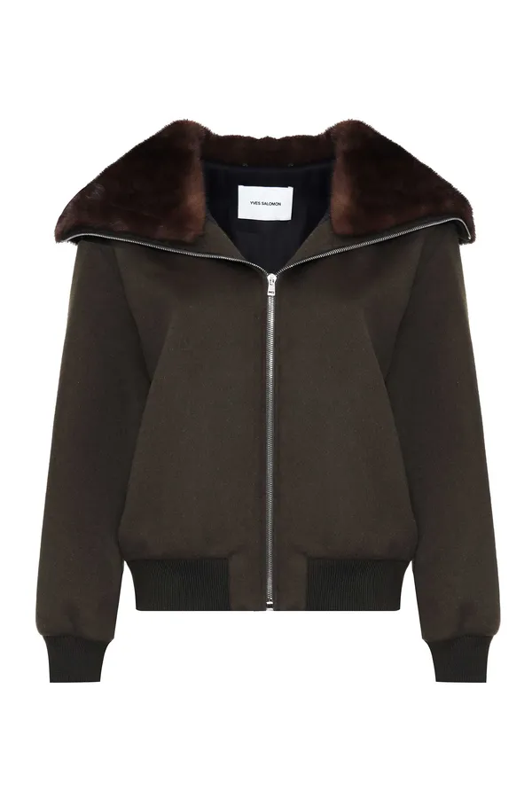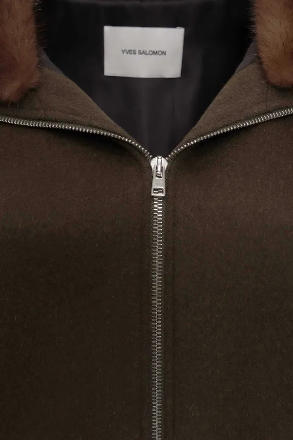 YVES SALOMON ARMY БОМБЕР Т/ОЛИВКОВЫЙ ШЕРСТЬ/КАШЕМИР, НА МОЛНИИ, ОТСТЁГИВ.ВОРОТНИК ИЗ НОРКИ, ТРИКОТАЖ.МАНЖЕТЫ