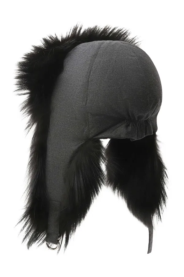ШАПКА-УШАНКА M.030 Т/СЕРАЯ КОМБИНИР., ШЕРСТЬ/ШЁЛК+МЕХ ЛИСЫ В ТОН