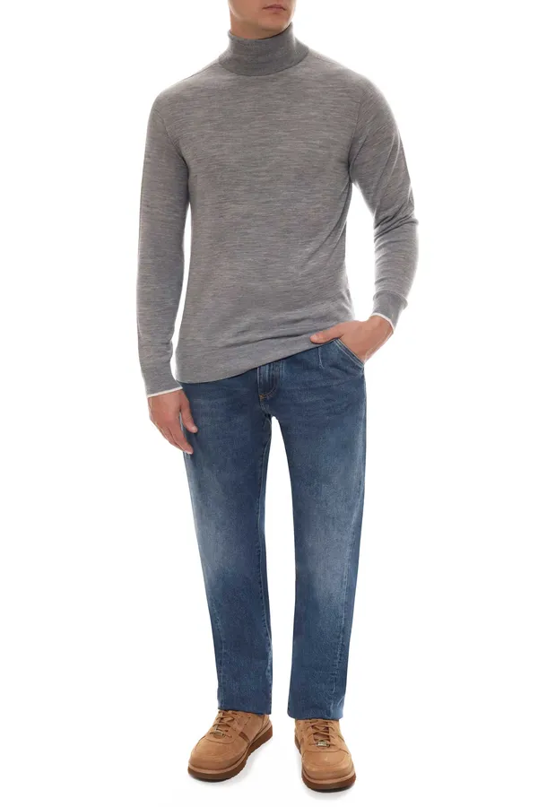 PESERICO ВОДОЛАЗКА СЕРАЯ МЕЛАНЖ, ШЕРСТЬ, БЕЛАЯ ПОЛОСА НА МАНЖЕТАХ