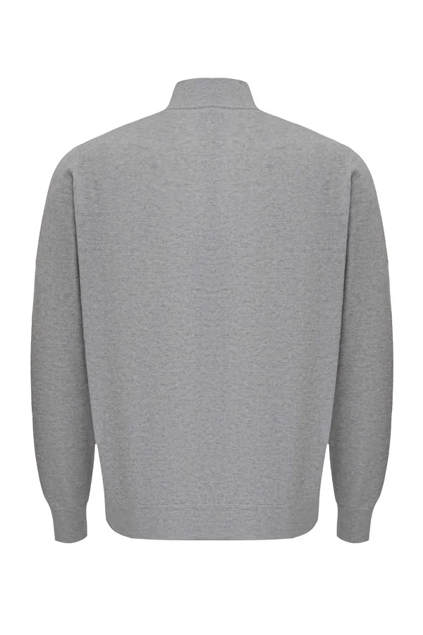 КАРДИГАН M.59402 СВ/СЕРЫЙ ШЕРСТЬ/КАШЕМИР, НА МОЛНИИ, МОЛОЧНАЯ ПОЛОСА НА МАНЖЕТАХ