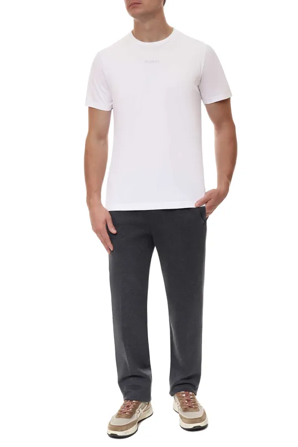 ФУТБОЛКА БЕЛАЯ, НАГРУДИ МАЛЕНЬКАЯ СВ/СЕРАЯ ЛОГО-НАДПИСЬ