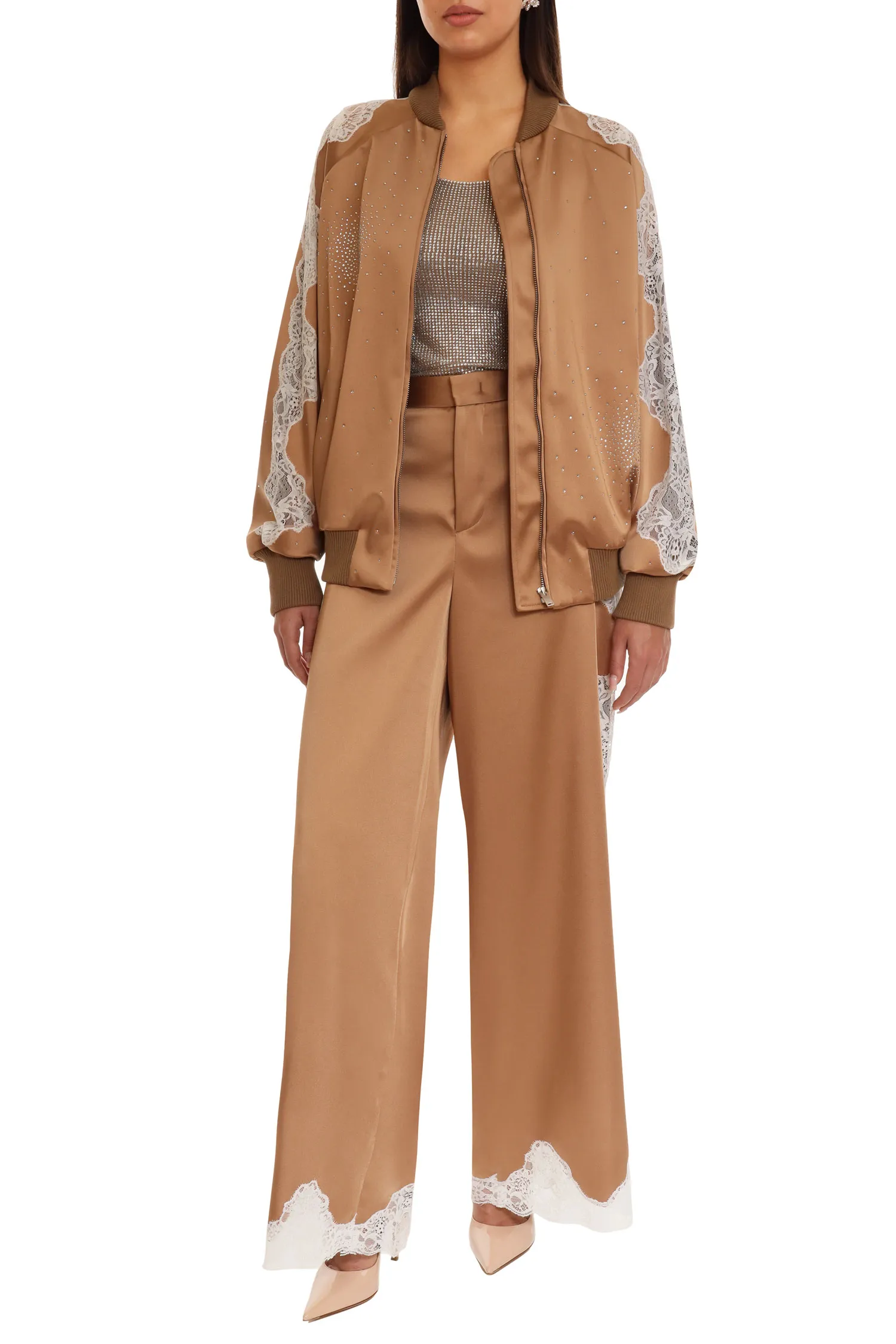 БОМБЕР M.127 БЕЖЕВЫЙ АТЛАС, РУКАВА ОТД.БЕЛОЕ КРУЖЕВО, ОТД.СТРАЗЫ, ТРИКОТАЖНЫЕ МАНЖЕТЫ