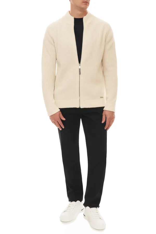 КАРДИГАН M.184 МОЛОЧНЫЙ ШЕРСТЬ, НА МОЛНИИ, ВОРОТ-СТОЙКА