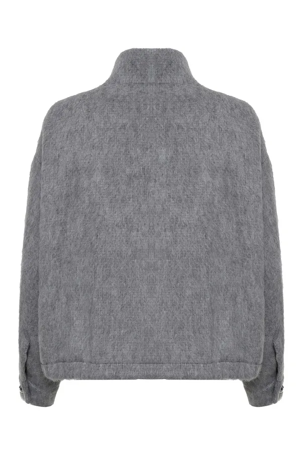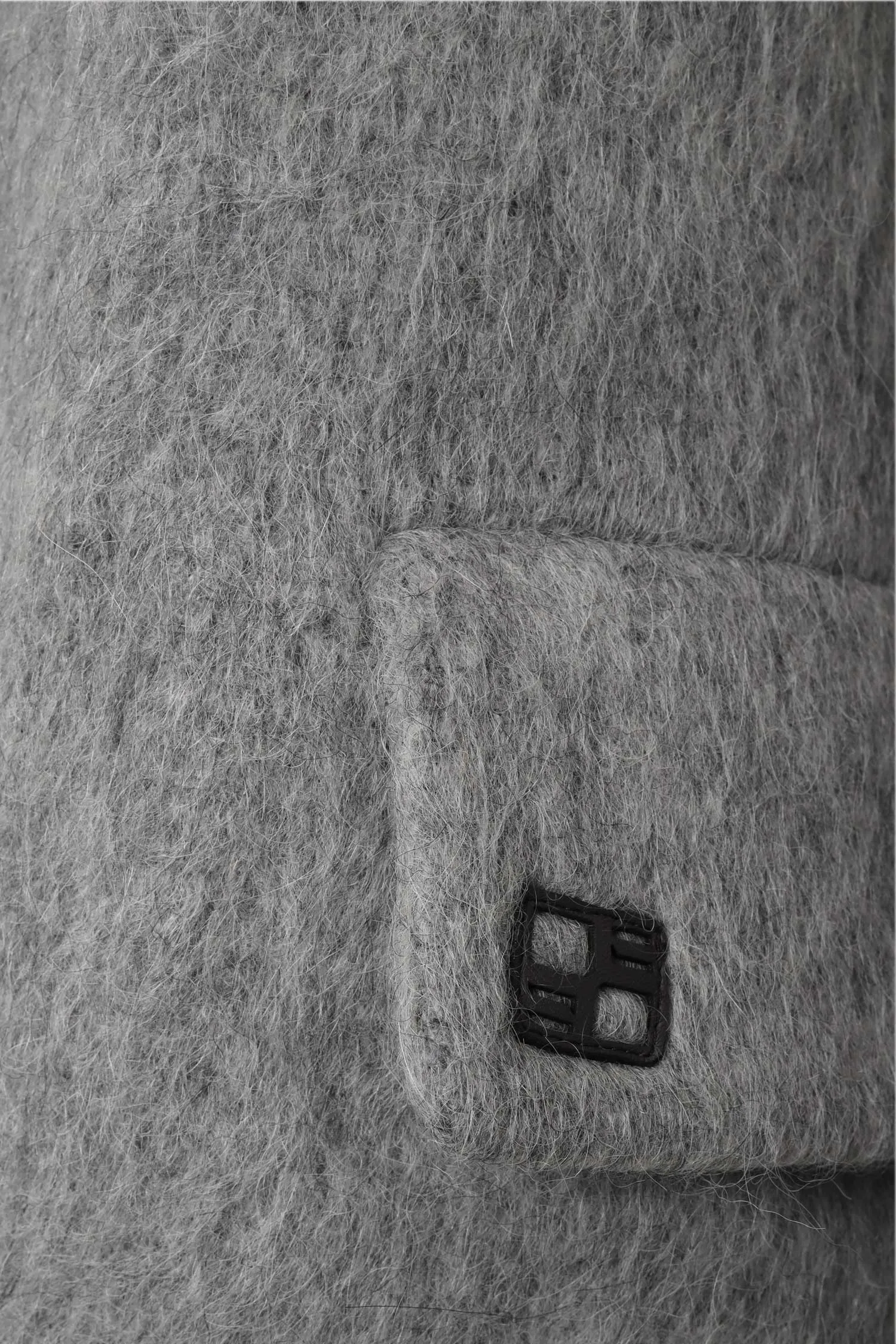 КУРТКА M.3021 СЕРАЯ ШЕРСТЬ/МОХЕР, СНИЗУ НА КУЛИСКЕ, КАРМАНЫ С КЛАПАНОМ, ВОРОТ-СТОЙКА