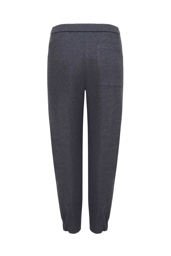 БРЮКИ Т/СЕРЫЕ, ОТСТРОЧЕННЫЕ СТРЕЛКИ, СНИЗУ НА РЕЗИНКЕ, СЗАДИ НАКЛАДНЫЕ КАРМАНЫ