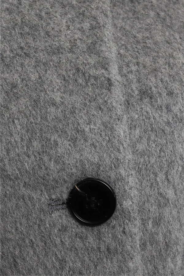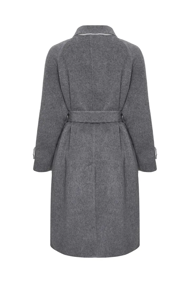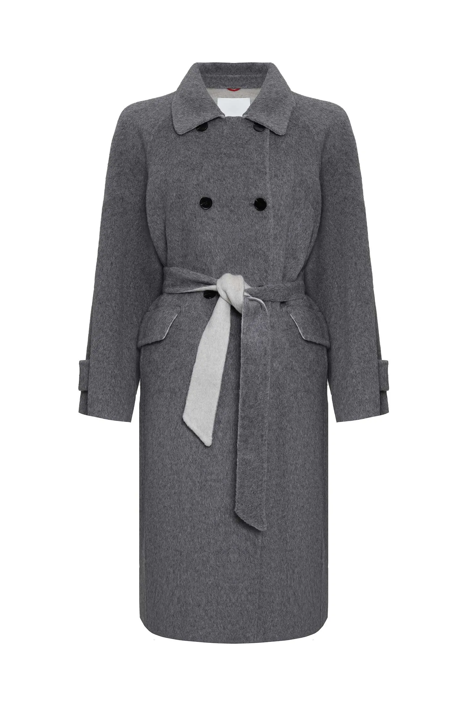 ПАЛЬТО СЕРОЕ ШЕРСТЬ, ДЛИННОЕ, ДВУБОРТНОЕ, БЕЗ ПОДКЛАДКИ, ПОЯС