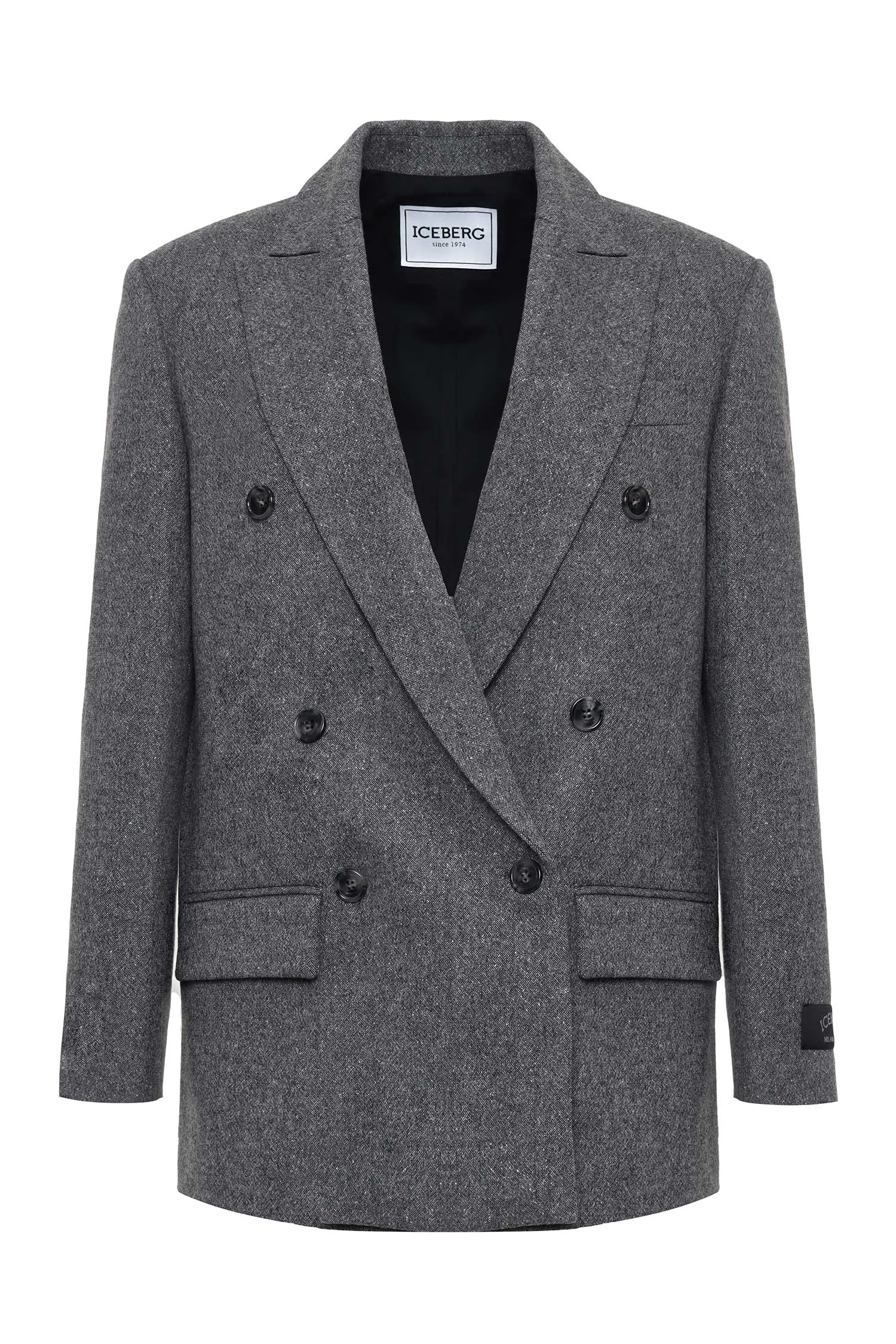 ICEBERG ЖАКЕТ M.011 СЕРЫЙ ШЕРСТЬ, ДВУБОРТНЫЙ, НАШИВКА-ЛОГО НА РУКАВЕ