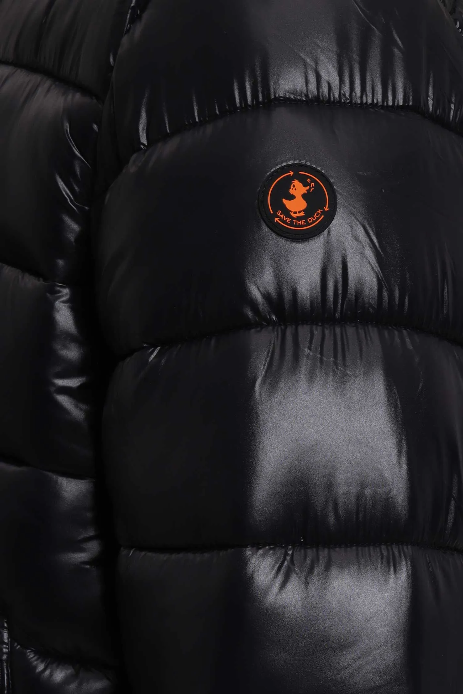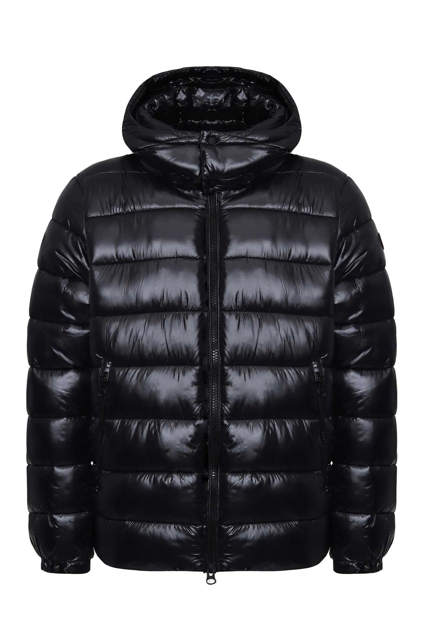 SAVE THE DUCK ПУХОВИК FLORIAN ЧЁРНЫЙ С СИНТЕТ.НАПОЛН., КОРОТКИЙ, БЛЕСТЯЩИЙ, СНИЗУ НА КУЛИСКЕ, ОТСТЁГИВ.КАПЮШОН