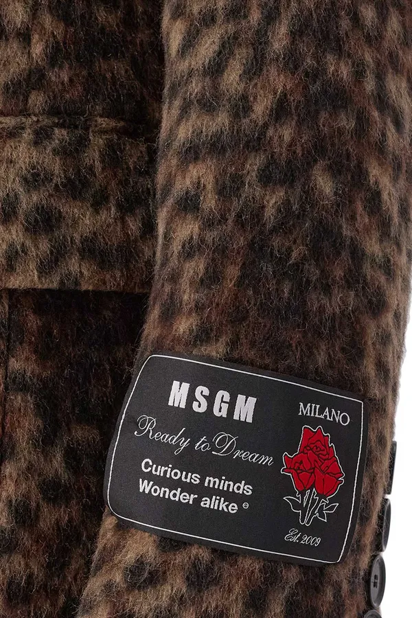 ПАЛЬТО БЕЖЕВО-КОРИЧНЕВОЕ ШЕРСТЬ, ПРИНТ ЛЕОПАРД, ДЛИННОЕ, ПРИТАЛЕННОЕ, КАРМАНЫ С КЛАПАНОМ, СЗАДИ РАЗРЕЗ