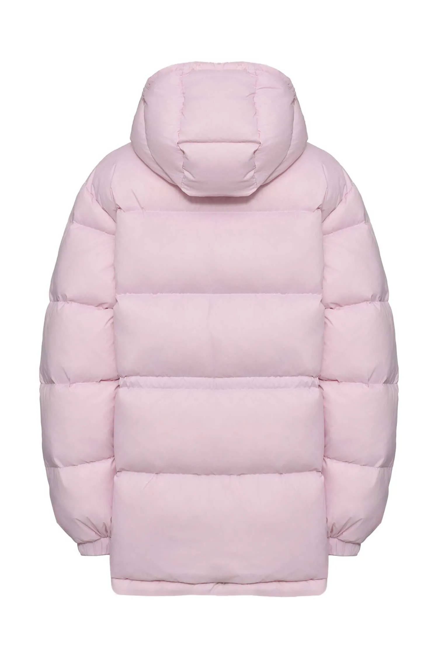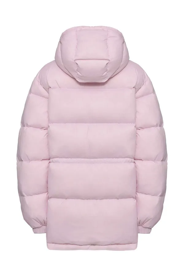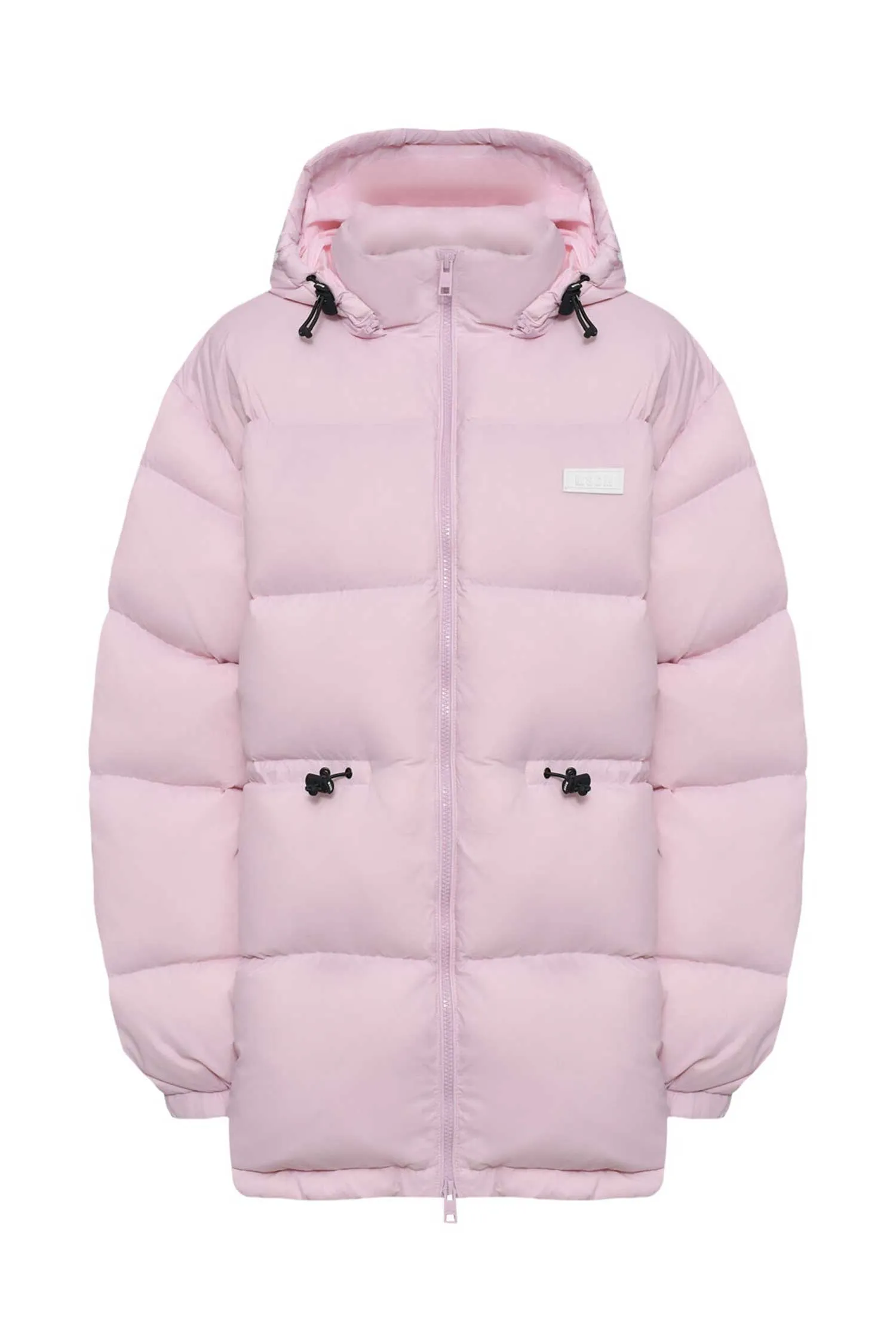 ПУХОВИК М.007 СВ/РОЗОВЫЙ, СТЁГАНЫЙ, НА ГРУДИ БЕЛАЯ НАШИВКА-ЛОГО, ПОЯС НА КУЛИСКЕ, ОТСТЁГИВ.КАПЮШОН, ВОРОТ-СТОЙКА