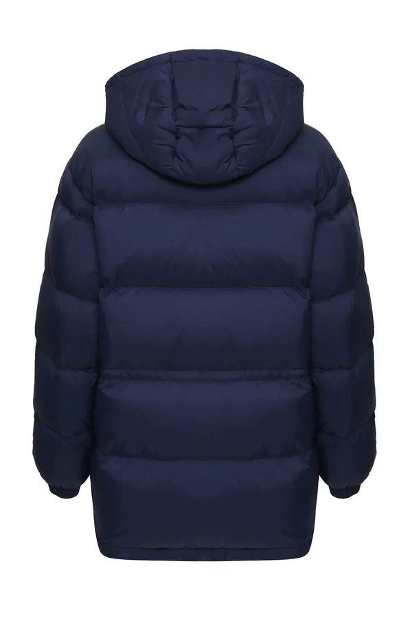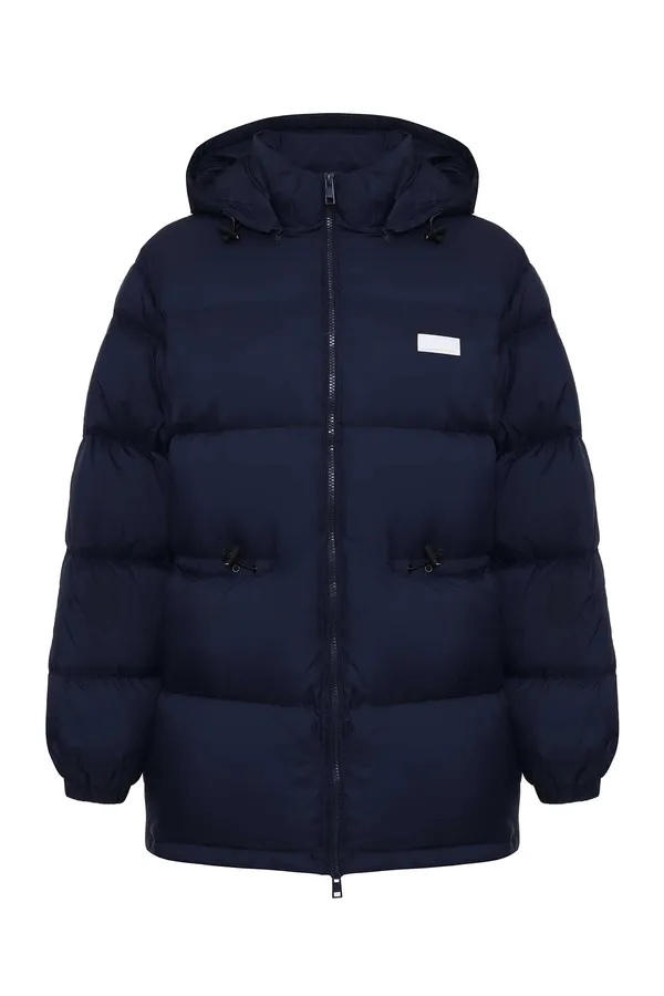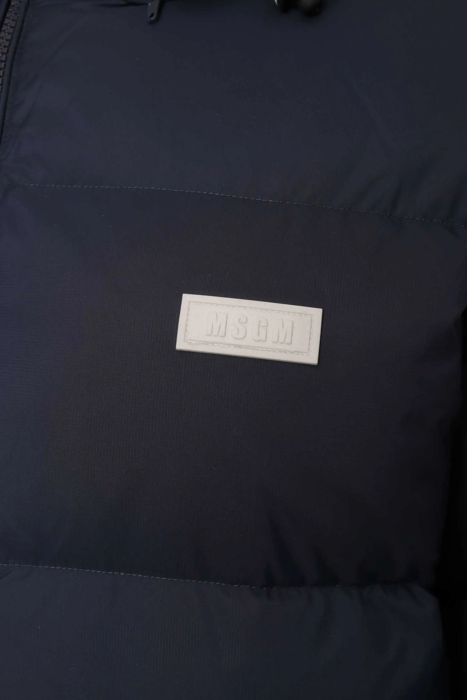 MSGM ПУХОВИК М.007 Т/СИНИЙ, СТЁГАНЫЙ, НА ГРУДИ БЕЛАЯ НАШИВКА-ЛОГО, ПОЯС НА КУЛИСКЕ, ОТСТЁГИВ.КАПЮШОН, ВОРОТ-СТОЙКА