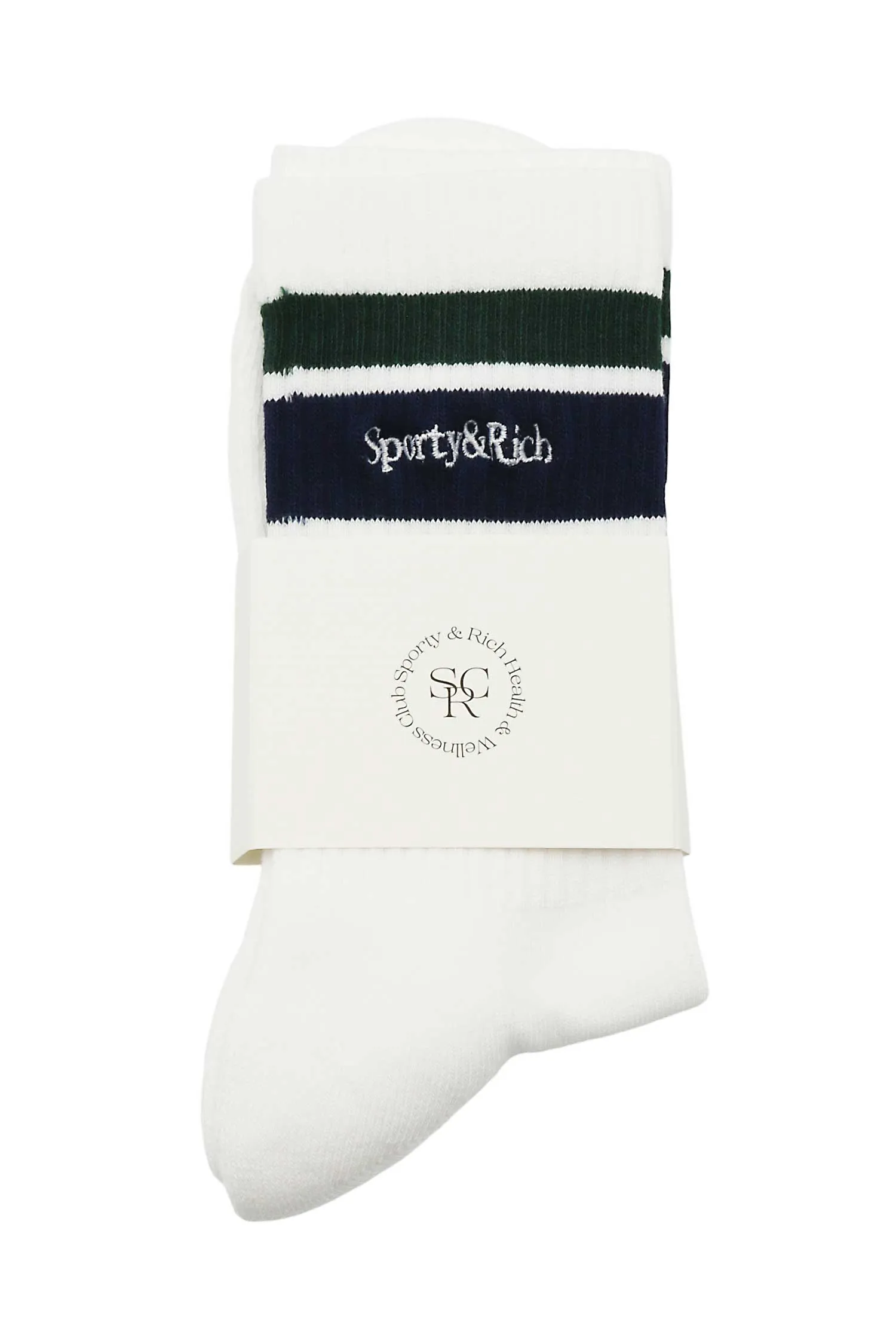 НОСКИ БЕЛЫЕ, Т/СИНЯЯ/Т/ЗЕЛЁНАЯ ПОЛОСЫ, ВЫШИТАЯ БЕЛАЯ ЛОГО-НАДПИСЬ