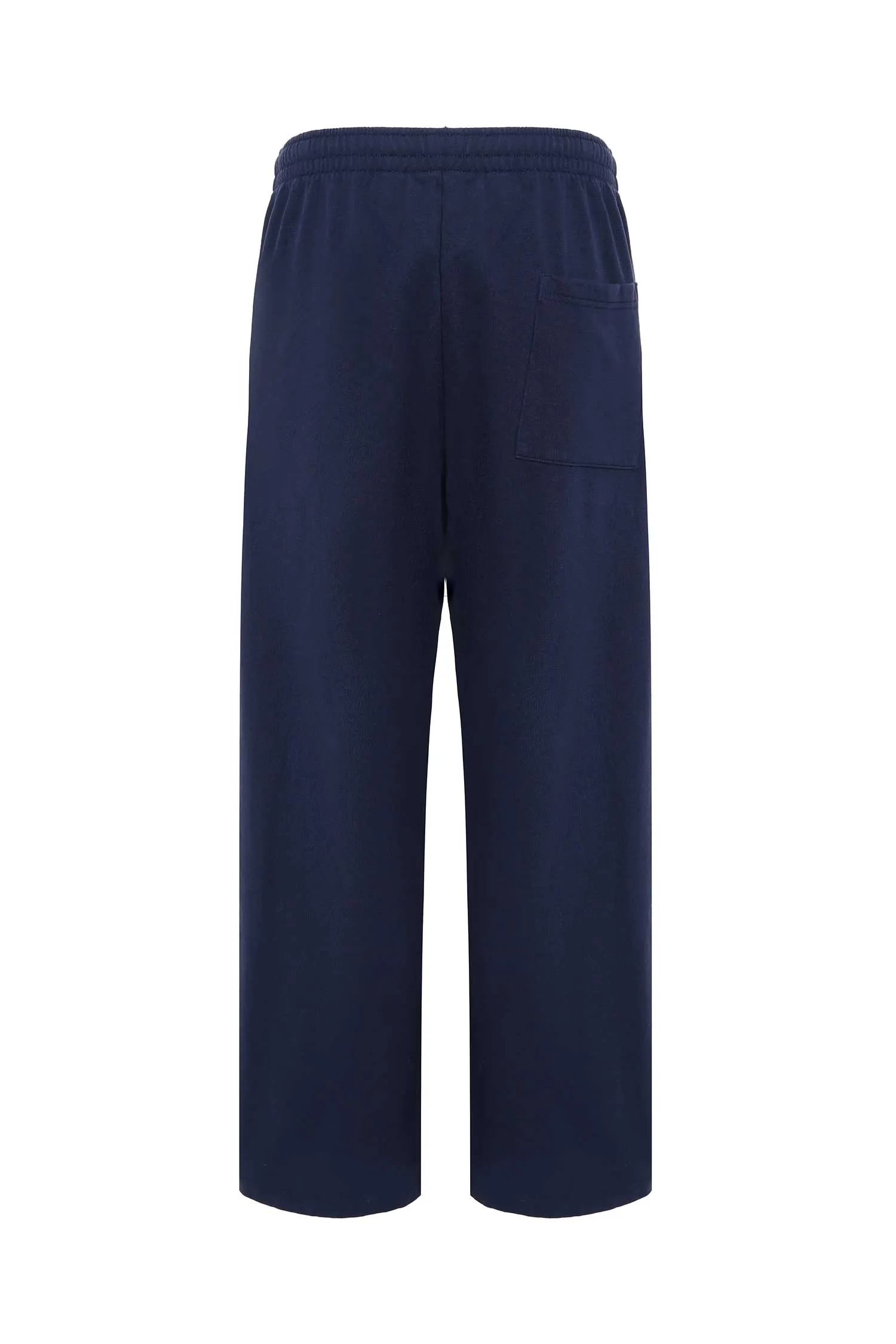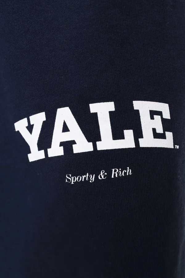 SPORTY&RICH ШТАНЫ Т/СИНИЕ, ПРЯМЫЕ, УТЕПЛЁННЫЕ, НА КУЛИСКЕ, СЗАДИ НАКЛАДНОЙ КАРМАН, БЕЛАЯ НАДПИСЬ YALE