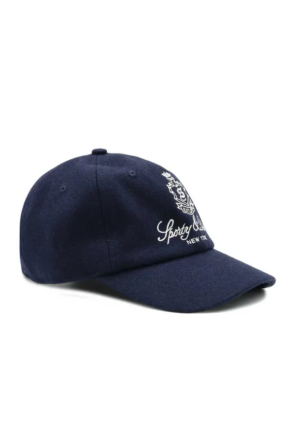 БЕЙСБОЛКА Т/СИНЯЯ ИЗ ШЕРСТИ, СПЕРЕДИ ВЫШИТЫЙ БЕЛЫЙ ГЕРБ И ЛОГО-НАДПИСЬ