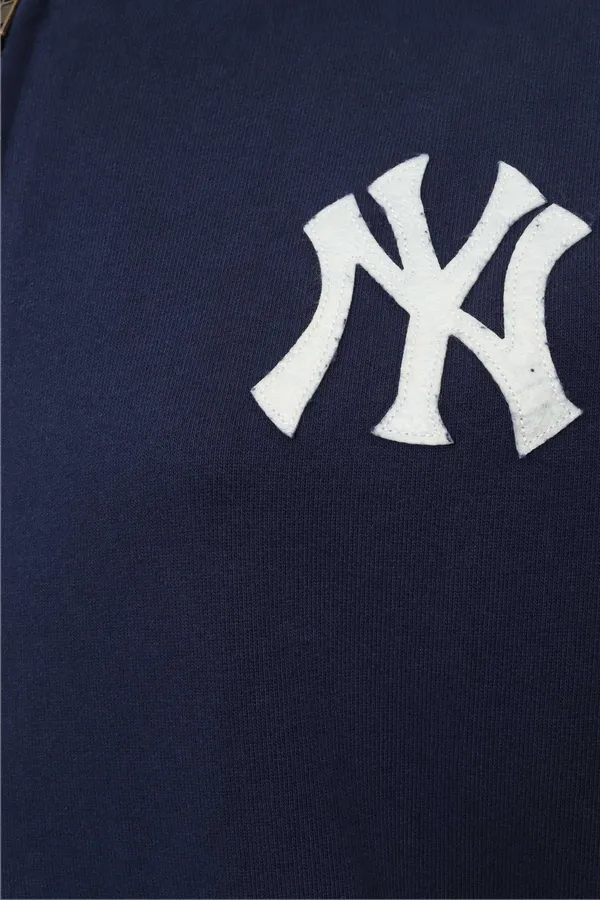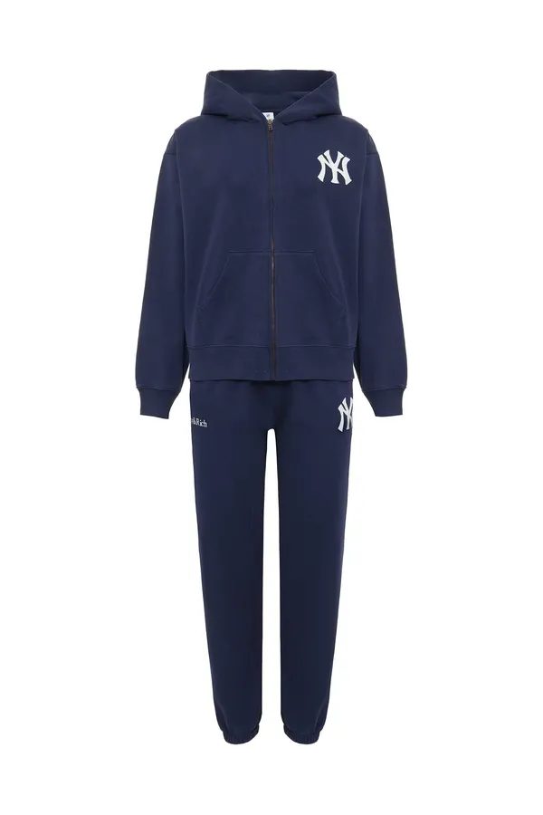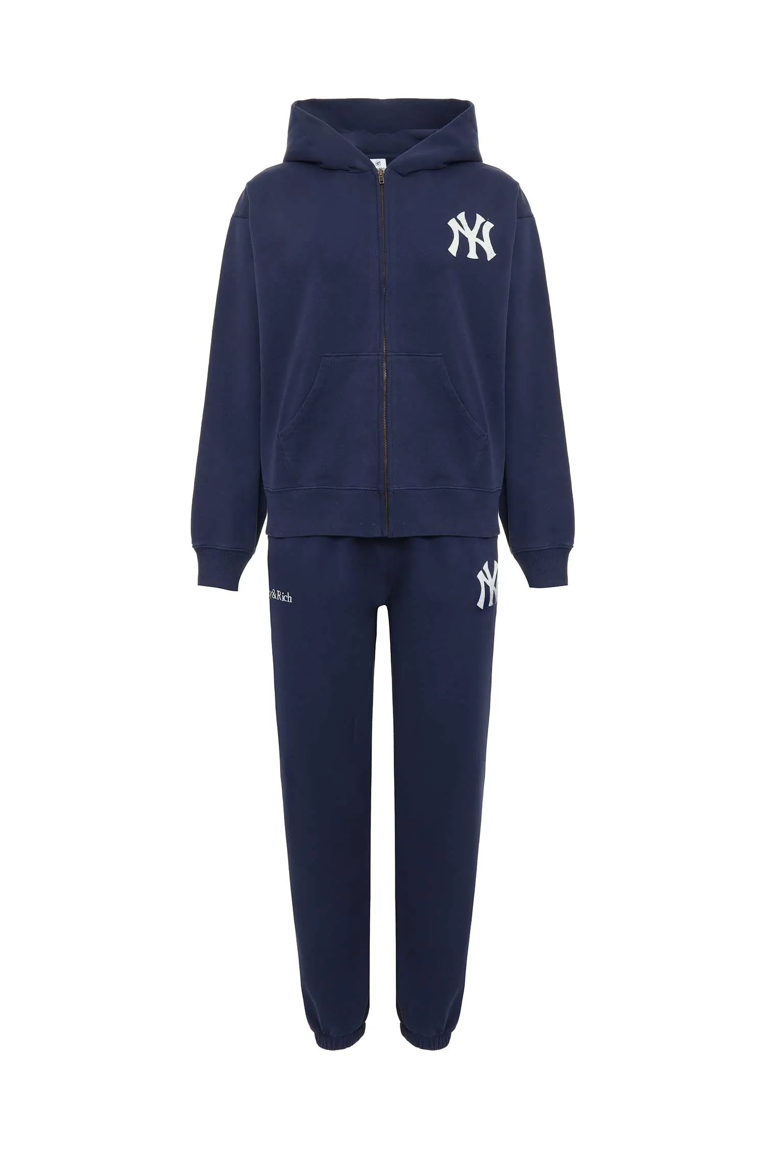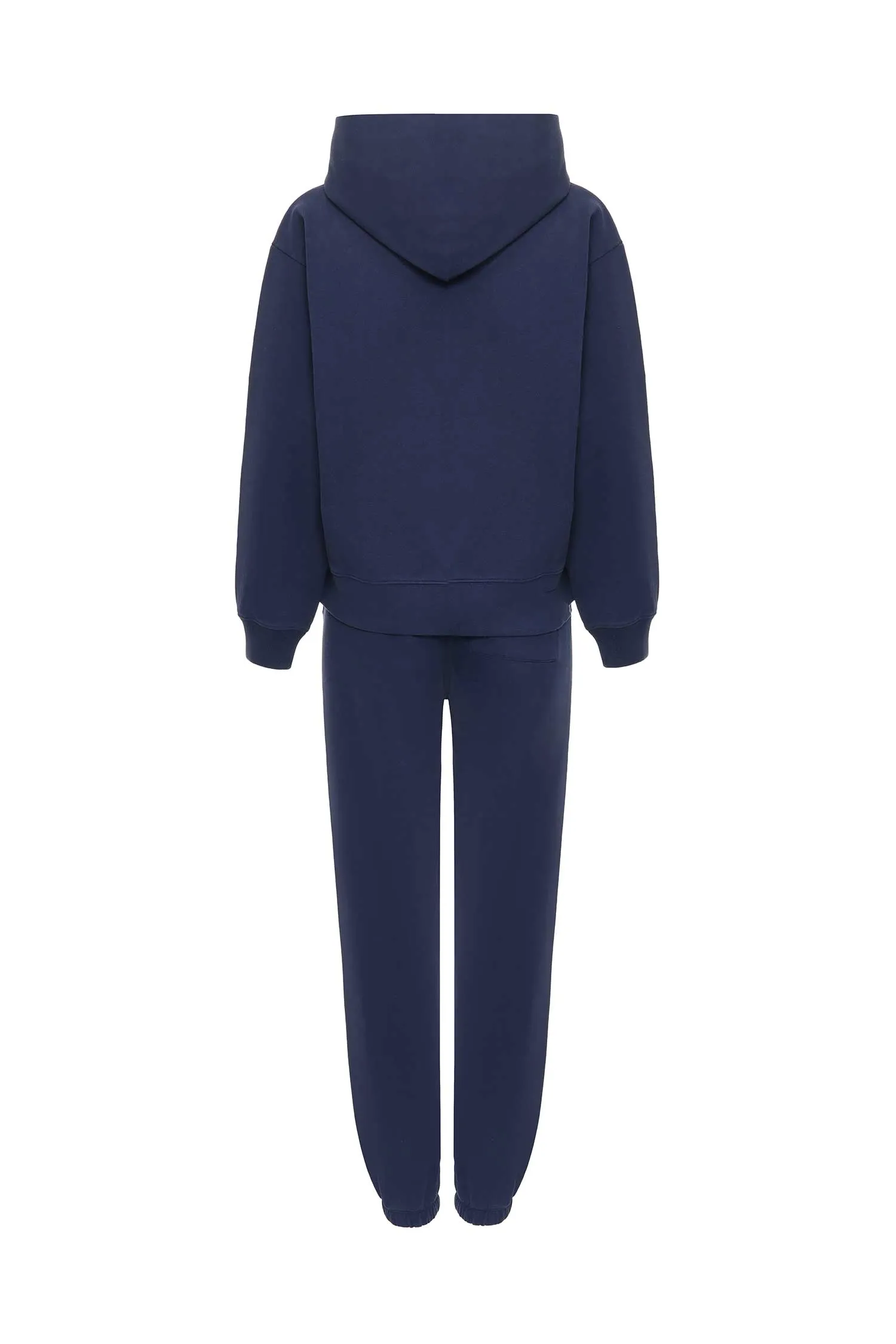 КОСТЮМ Т/СИНИЙ, УТЕПЛЁННЫЙ, ОЛИМПИЙКА С КАПЮШОНОМ+ШТАНЫ НА КУЛИСКЕ, НА ГРУДИ БЕЛАЯ НАШИВКА NY