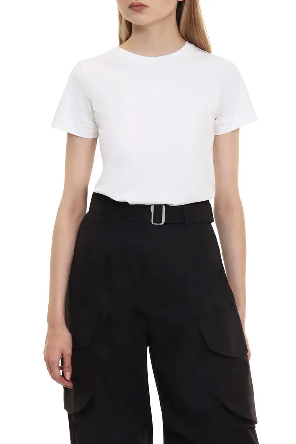 PINKO ФУТБОЛКА M.100 БЕЛАЯ, ПРИТАЛЕННАЯ, НА ГРУДИ ВЫШИТОЕ ЛОГО В ТОН