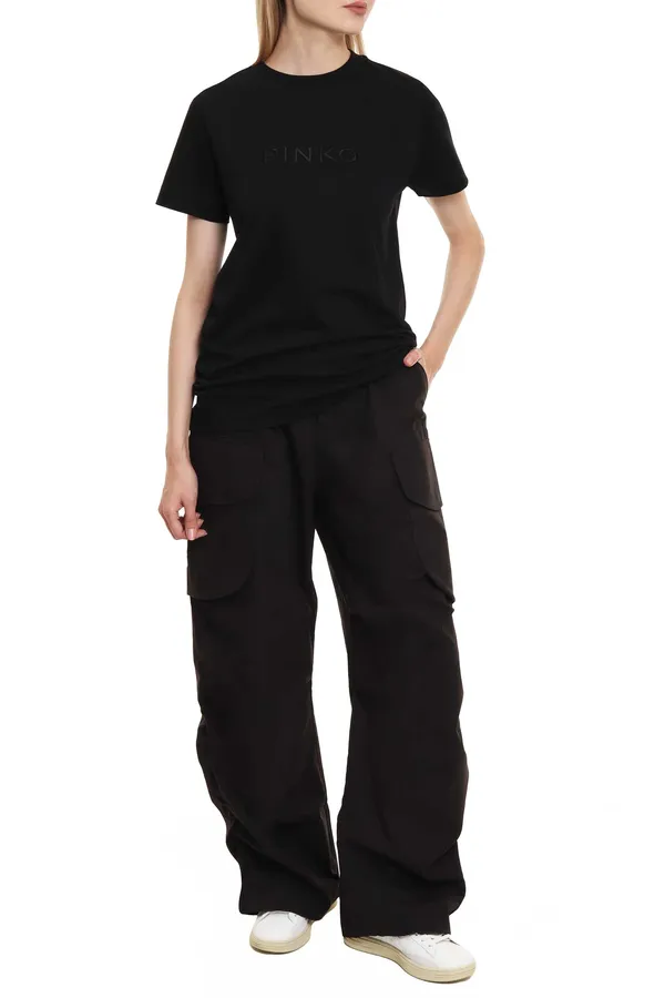 ФУТБОЛКА ЧЁРНАЯ, НА ГРУДВЫ ВЫШИТАЯ ЛОГО-НАДПИСЬ В ТОН