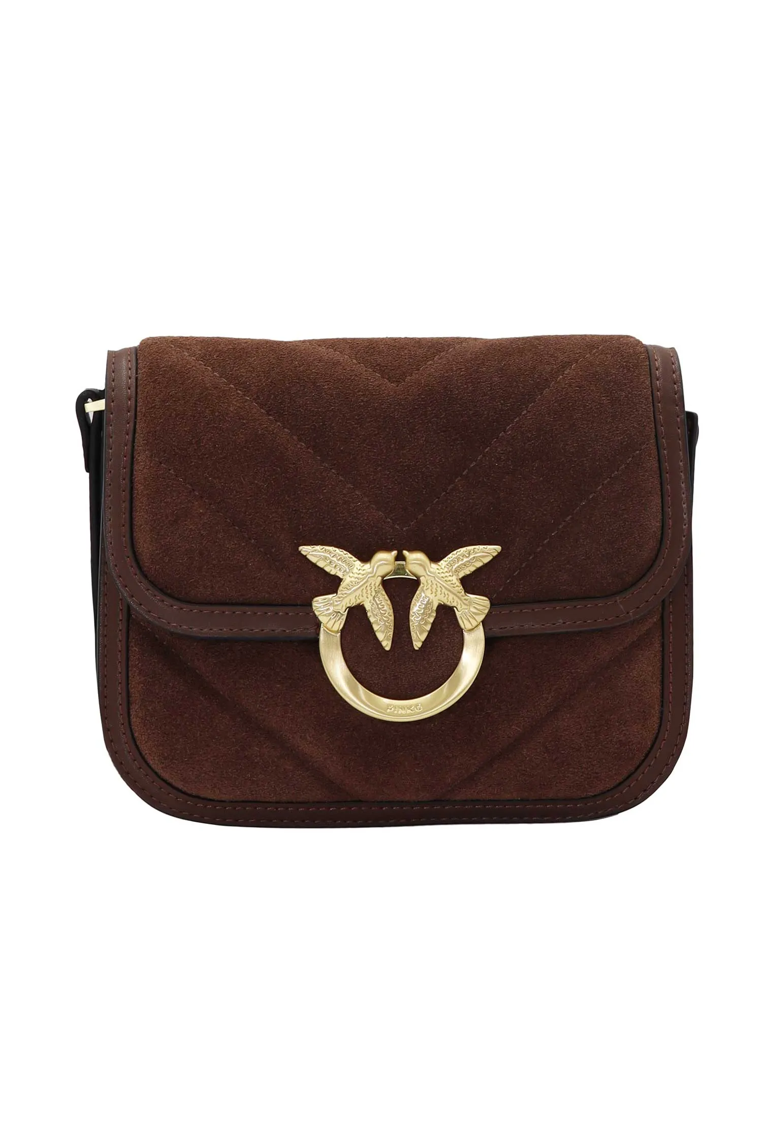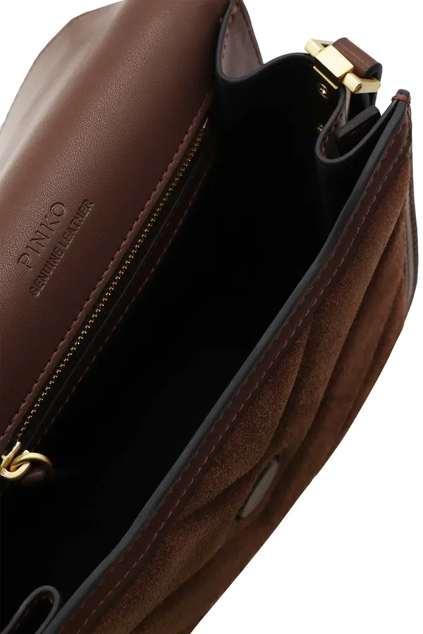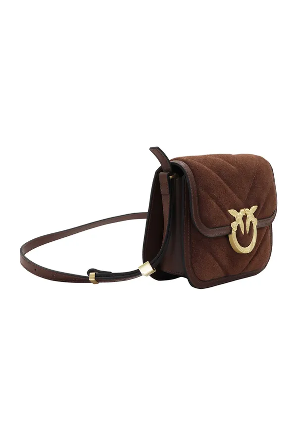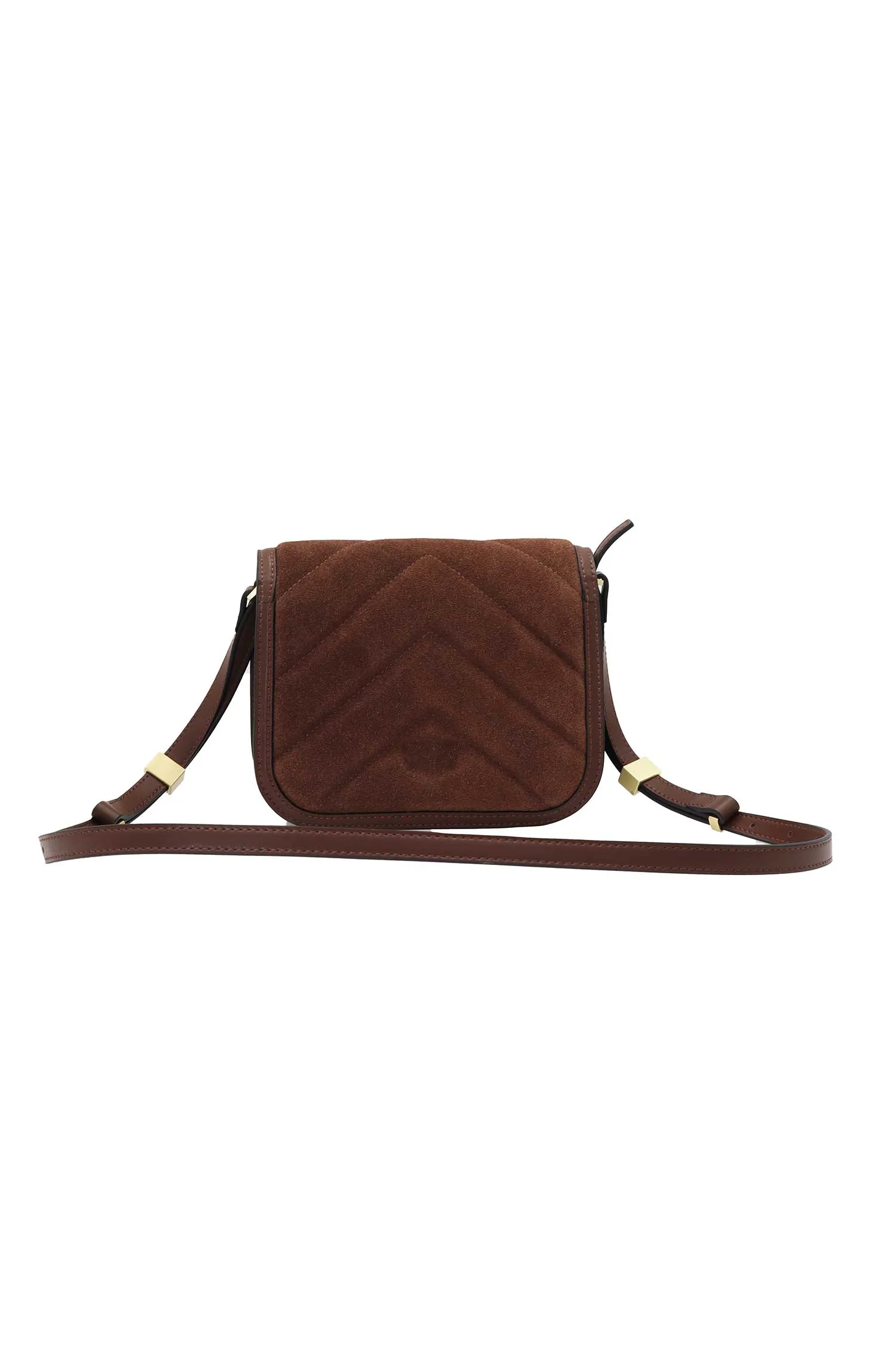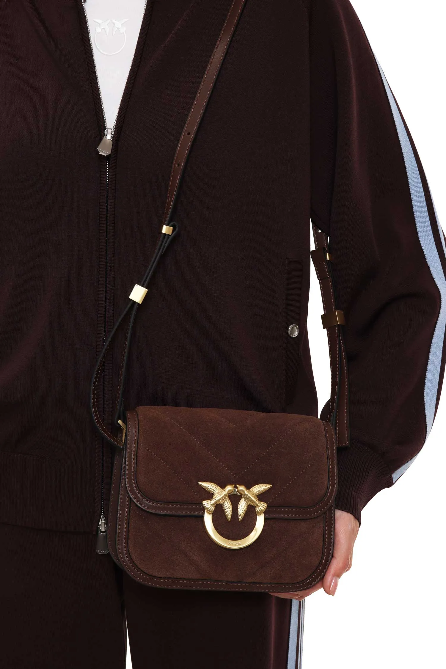 СУМКА LOVE BOX MINI КОРИЧНЕВАЯ, КОМБИНИР., ЗАМША+КОЖА, С КЛАПАНОМ, ЗОЛОТИСТАЯ ЗАСТЁЖКА-ЛОГО, РЕМЕШОК