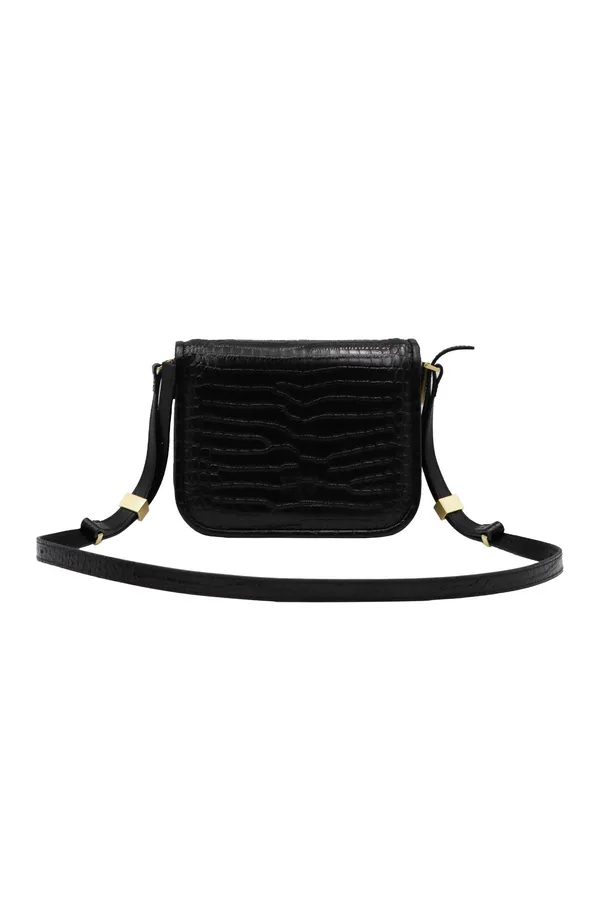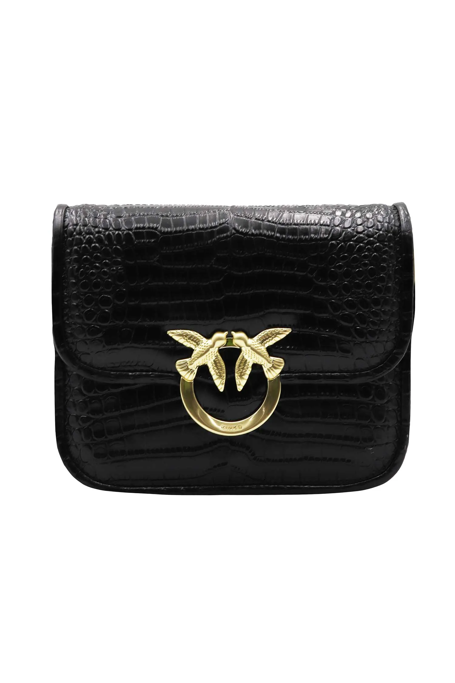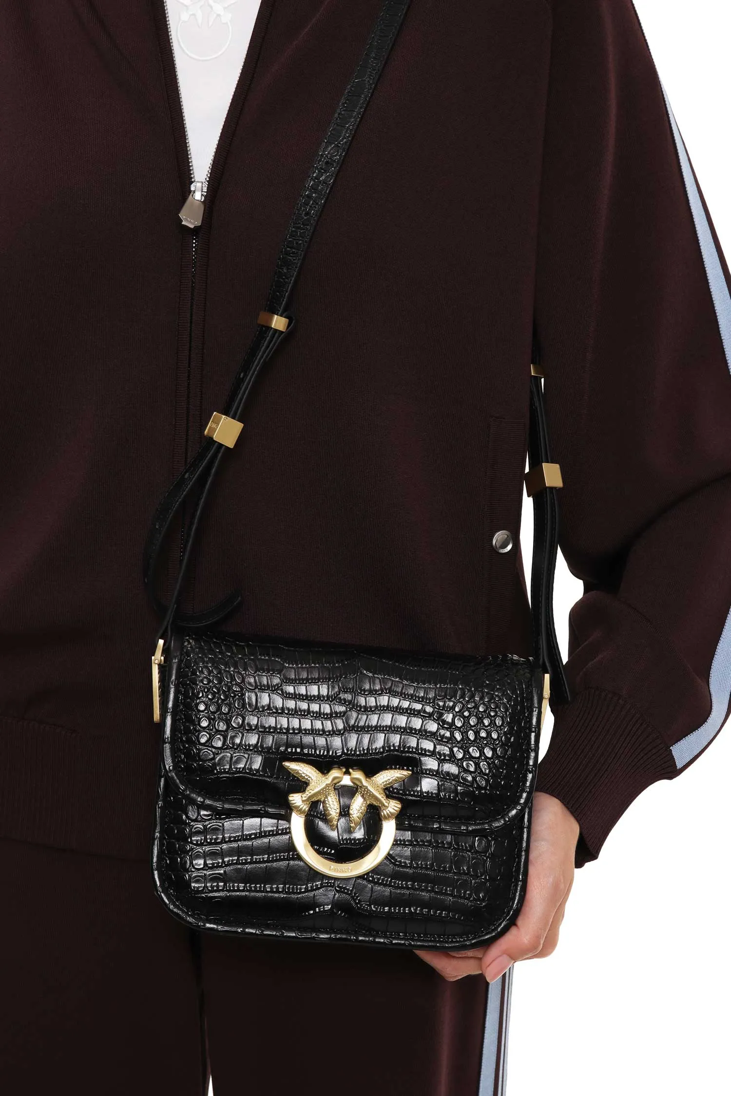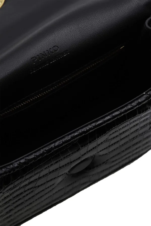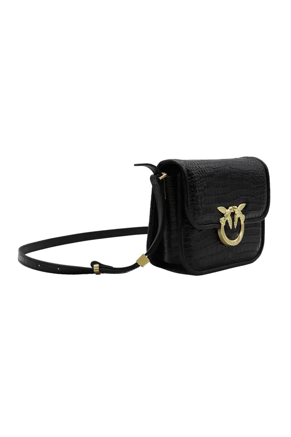 СУМКА LOVE BOX MINI ЧЁРНАЯ КОЖА, ПРИНТ КРОКО, С КЛАПАНОМ, ЗОЛОТИСТАЯ ЗАСТЁЖКА-ЛОГО, РЕМЕШОК
