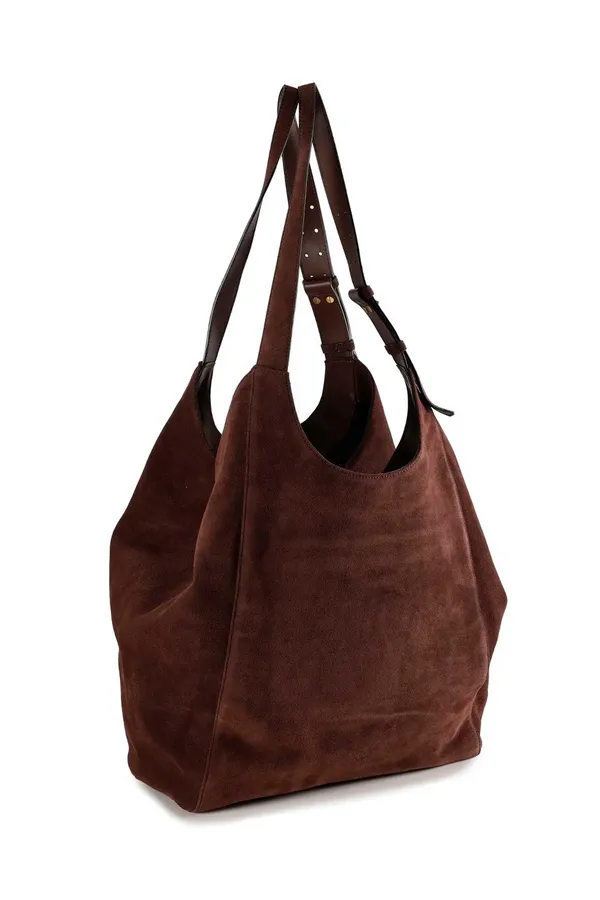 СУМКА-ТОУТ EXTRA КОРИЧНЕВАЯ ЗАМША, ЗОЛОТИСТОЕ ЛОГО, РЕГУЛИРУЕМЫЕ РУЧКИ