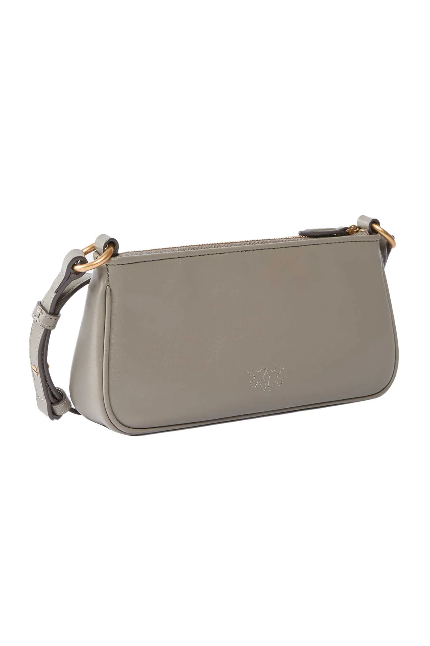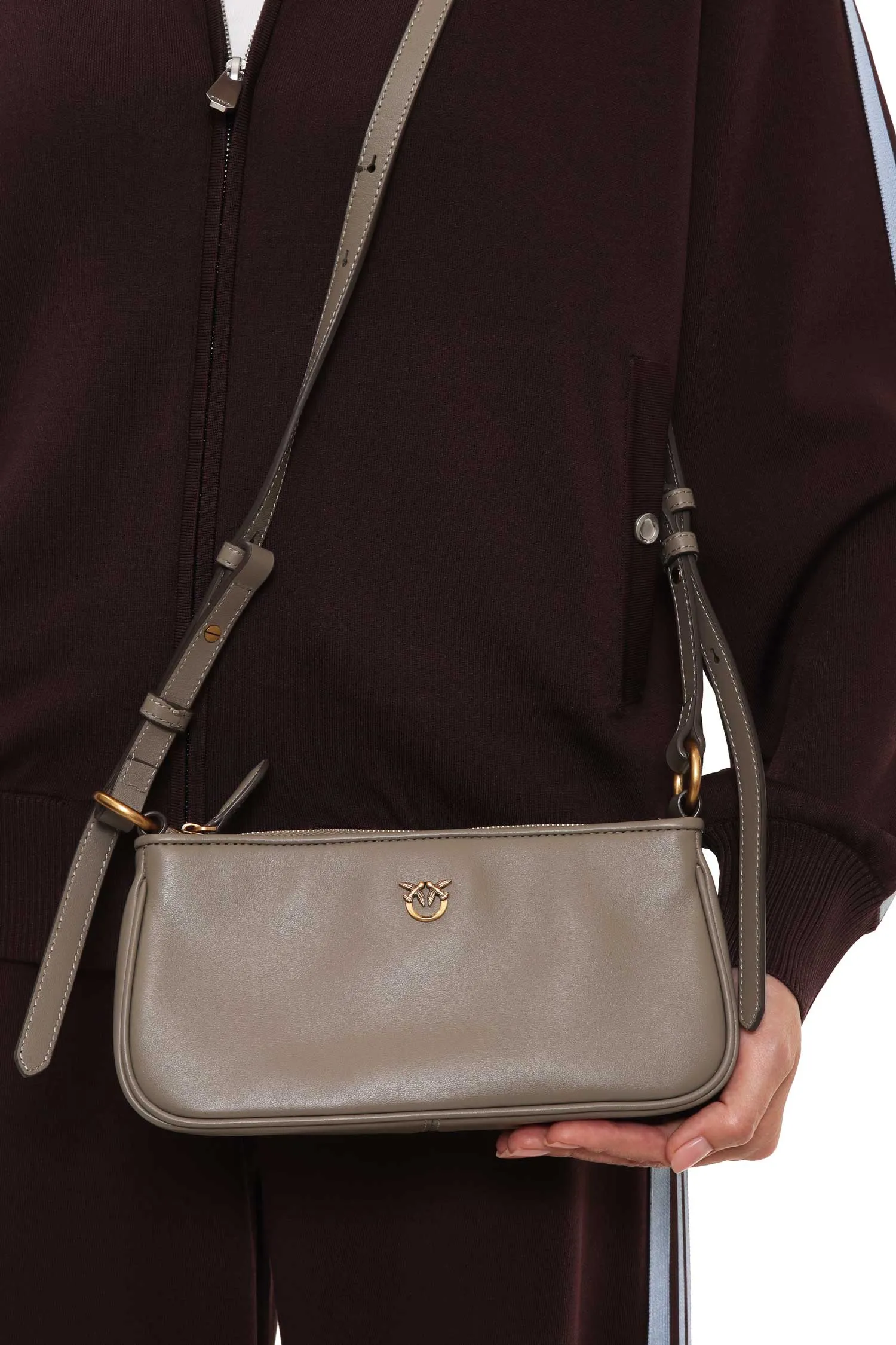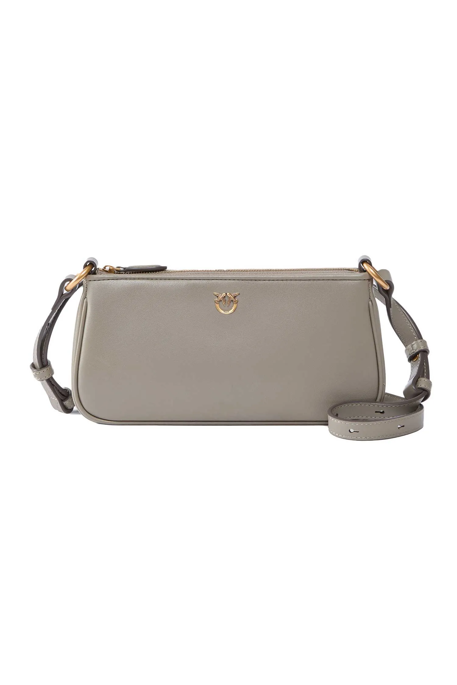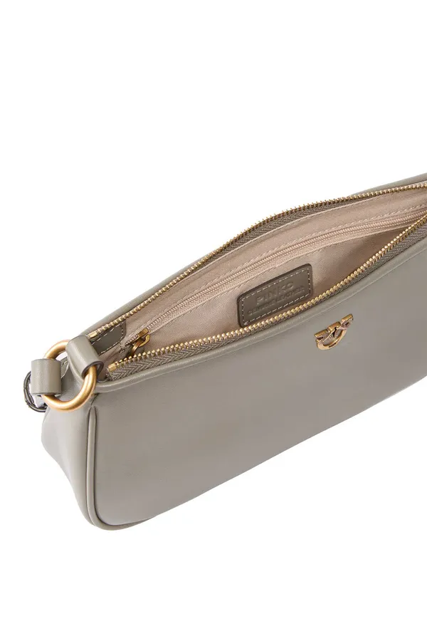 СУМКА HALF MOON BAGUETTE MINI СЕРО-КОРИЧНЕВАЯ КОЖА, НА МОЛНИИ, ЗОЛОТИСТОЕ ЛОГО, РЕМЕШОК