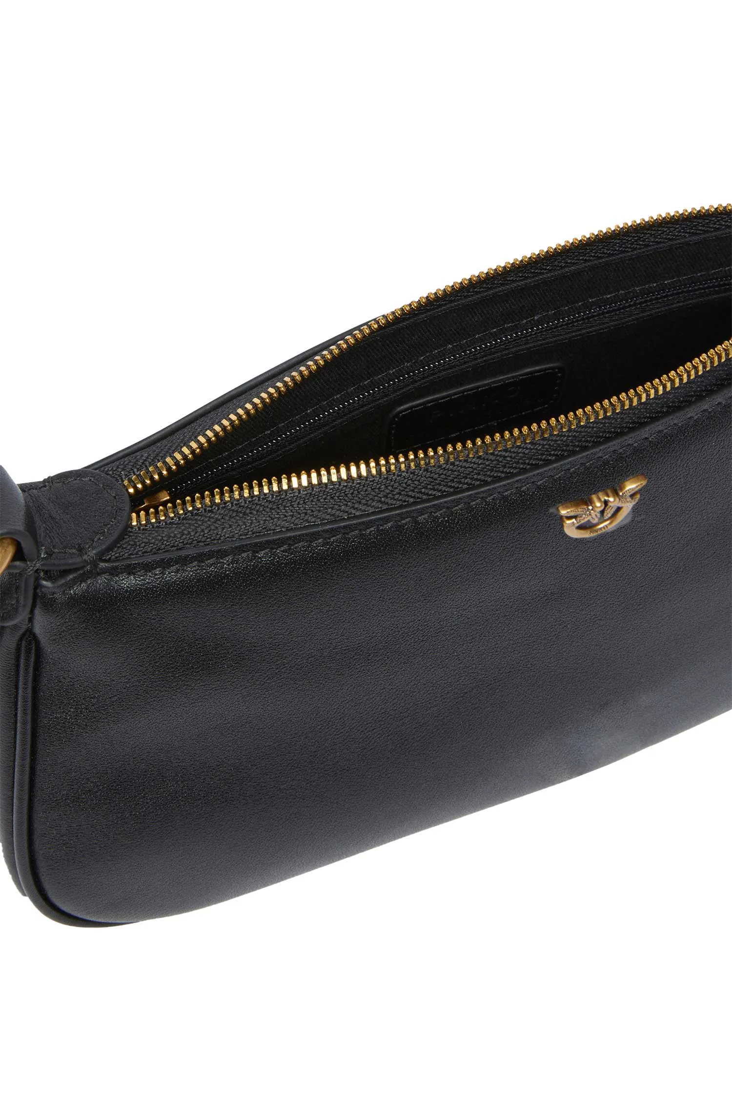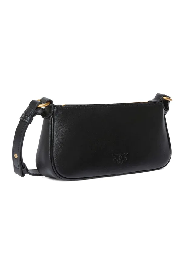 СУМКА HALF MOON BAGUETTE MINI ЧЁРНАЯ КОЖА, НА МОЛНИИ, ЗОЛОТИСТОЕ ЛОГО, РЕМЕШОК