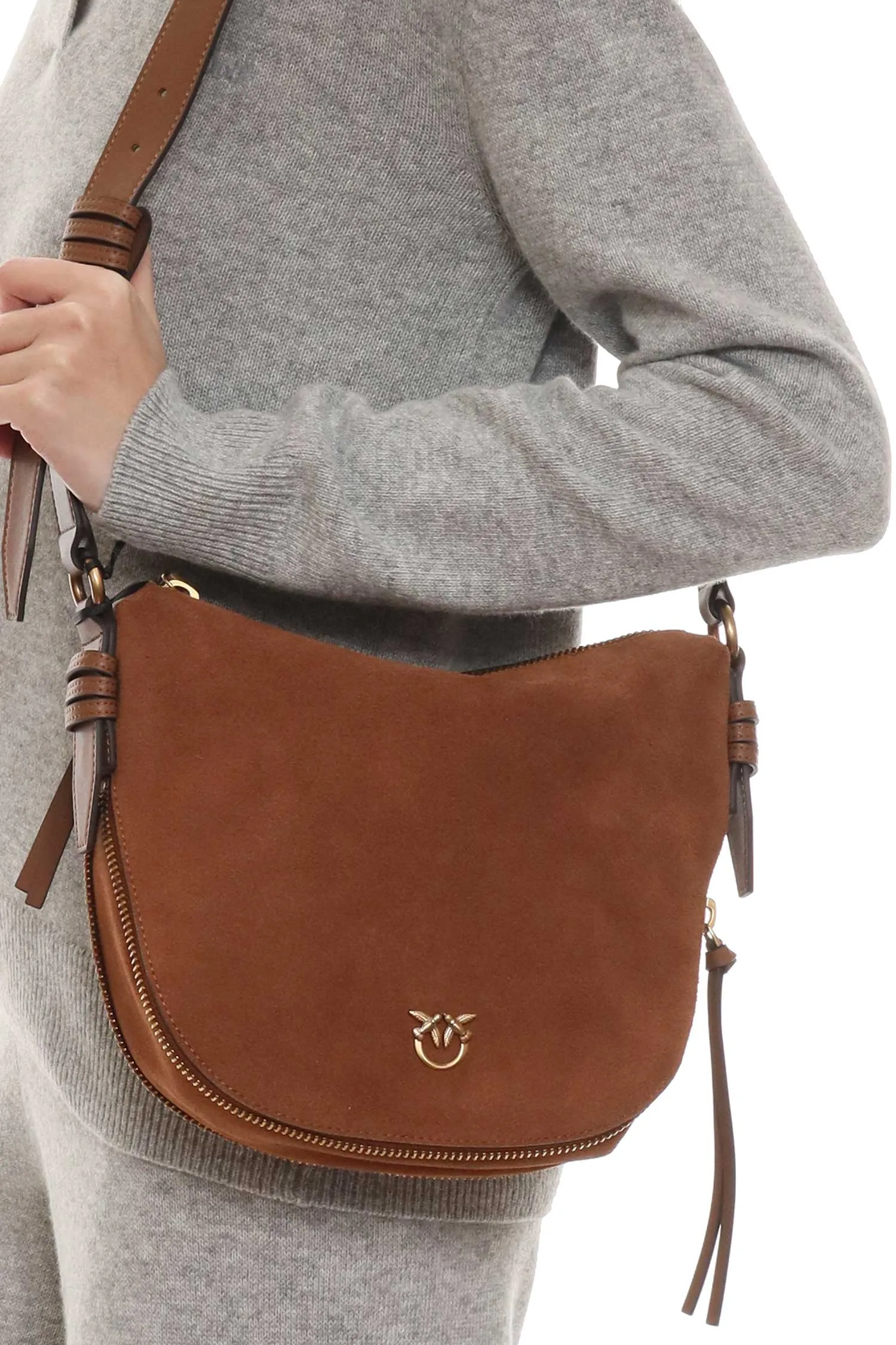 СУМКА HOBO ZIP AROUND MINI КОРИЧНЕВАЯ ЗАМША, ЗАСТЕЖКА-МОЛНИЯ СВЕРХУ И ПО НИЖНЕМУ КРАЮ, КОЖАНЫЙ РЕМЕШОК, ЛОГО