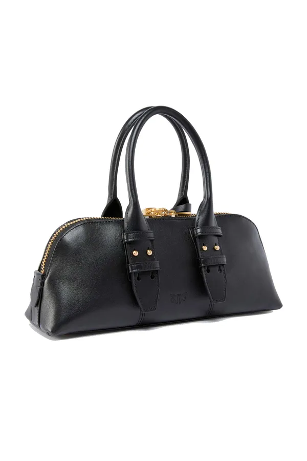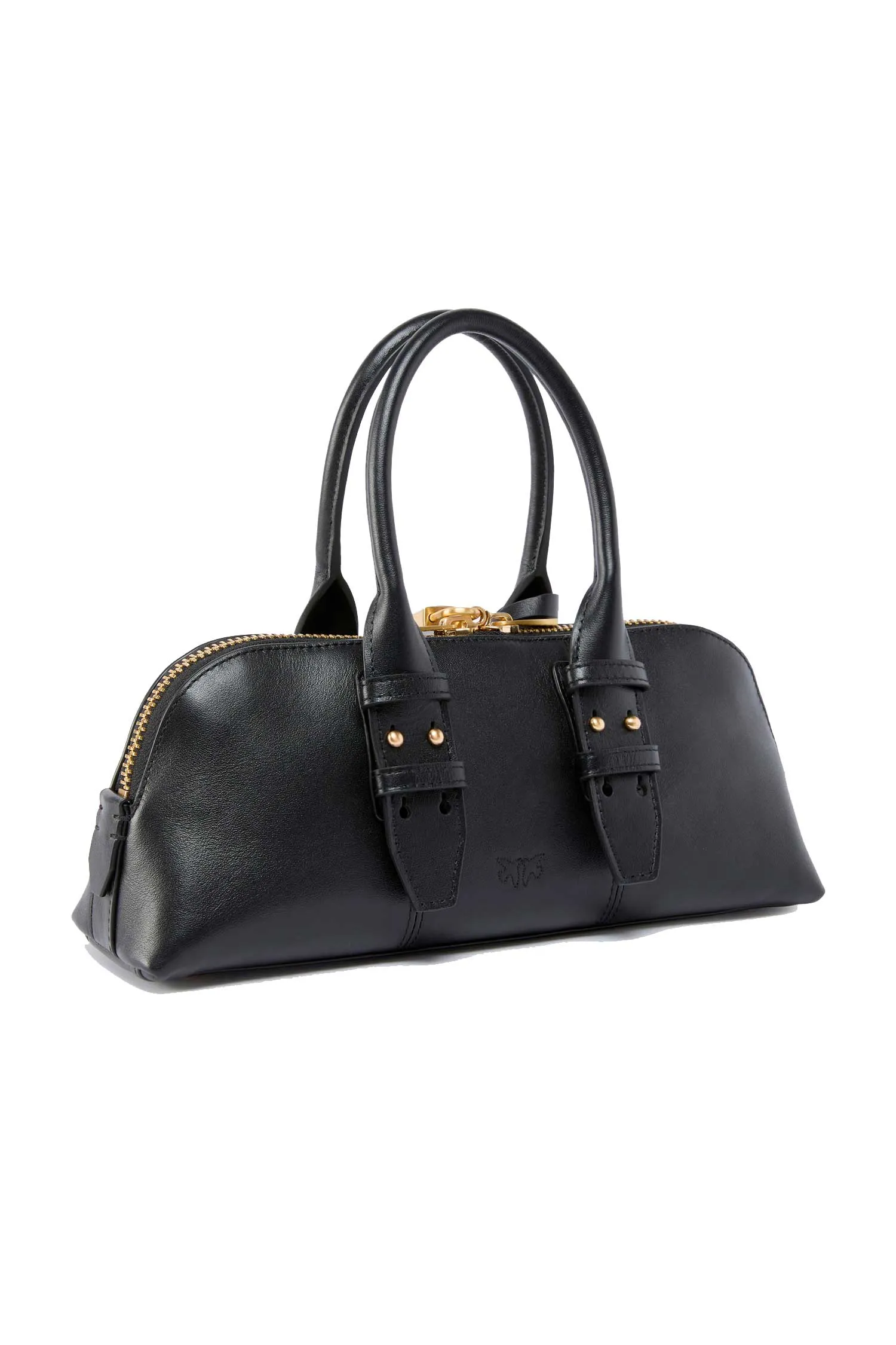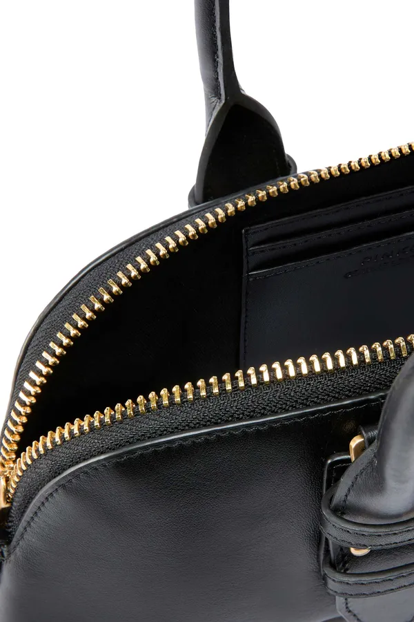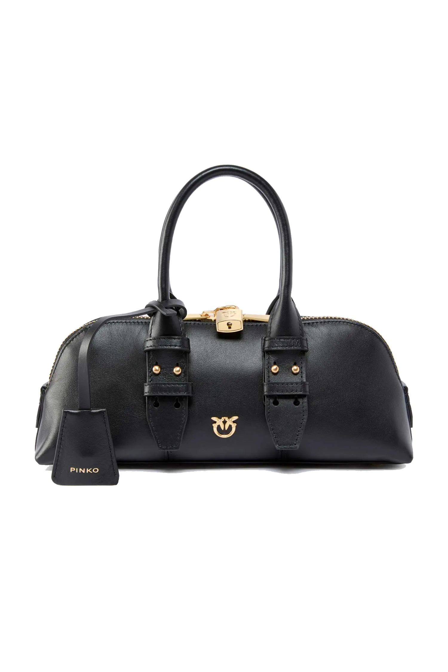 СУМКА ESCAPE SMALL ЧЁРНАЯ, МАТОВАЯ КОЖА, НА МОЛНИИ, ЗОЛОТИСТОЕ ЛОГО, БРЕЛОК-ЗАМОК, ОТСТЁГИВ.РУЧКИ, РЕМЕШОК