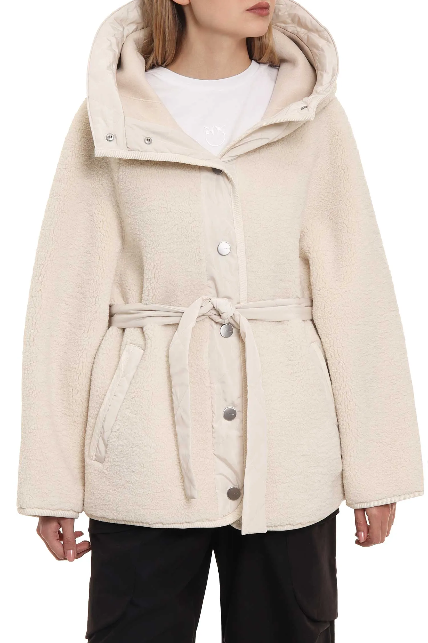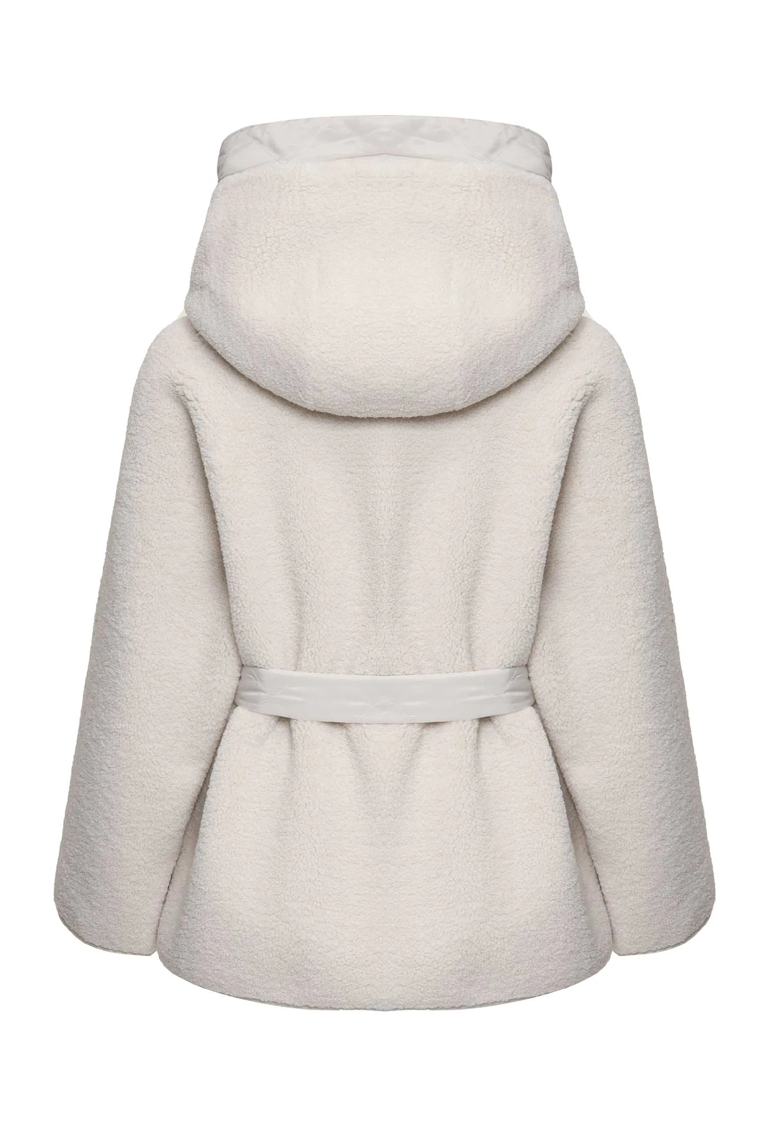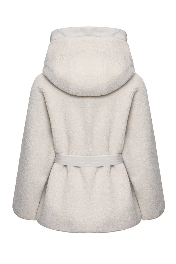 КУРТКА МОЛОЧНАЯ ЭКОМЕХ, НА КНОПКАХ, ПЛАНКА И КАПЮШОН ОТД.НЕЙЛОН, ПОЯС