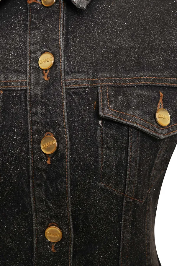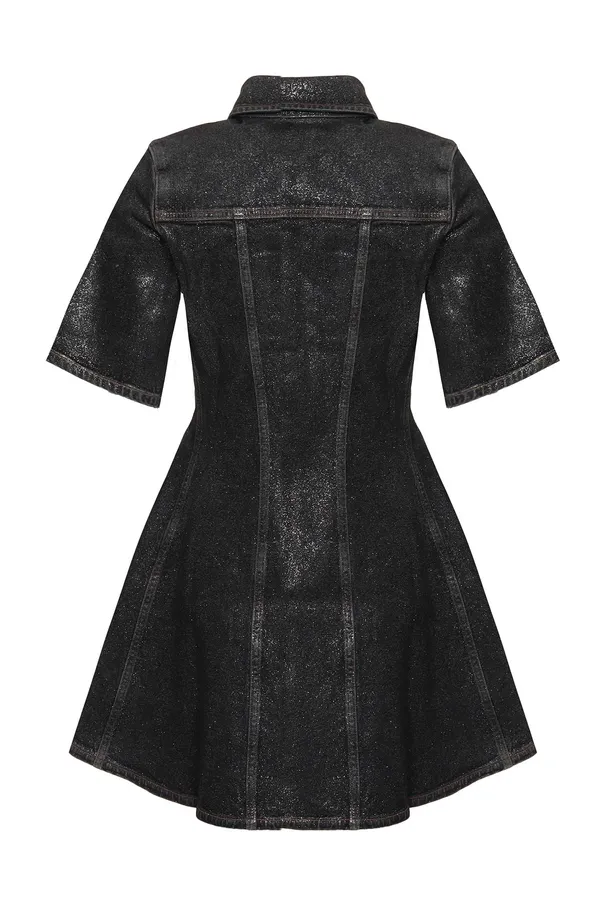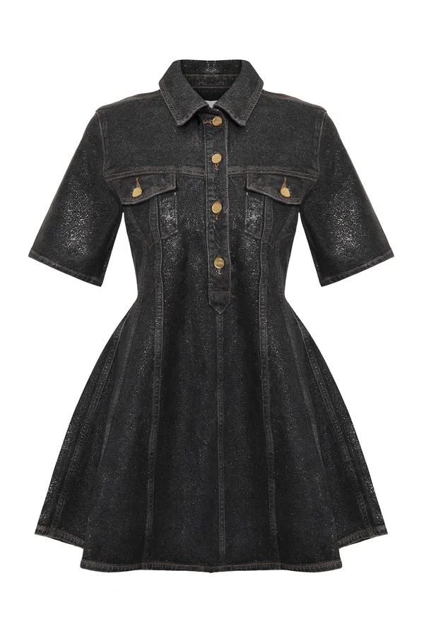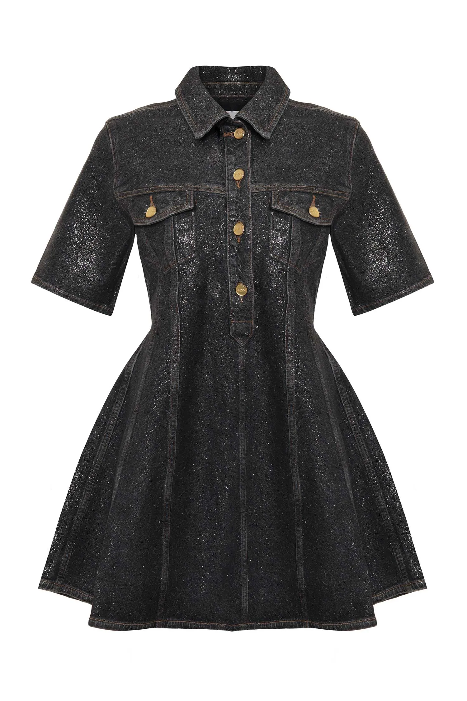 ПЛАТЬЕ Т/СЕРОЕ ДЖИНСОВОЕ, КАРМАНЫ НА ГРУДИ, ЛЮРЕКС, ЗОЛОТИСТЫЕ ПУГОВИЦЫ