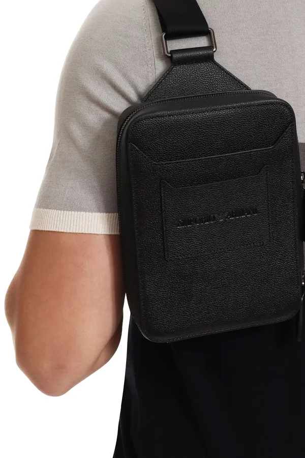 СУМКА ЧЁРНАЯ, ЗЕРНИСТАЯ КОЖА, КАРМАН С ТИСНЁНОЙ ЛОГО-НАДПИСЬЮ, Ч/З ПЛЕЧО