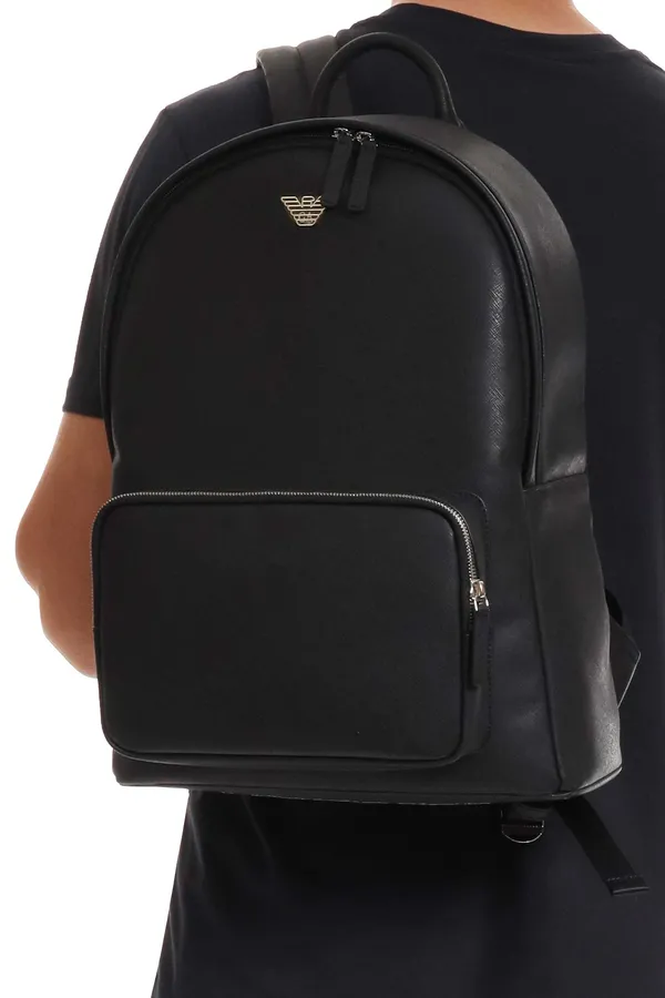 РЮКЗАК ЧЁРНЫЙ, ТИСНЁНАЯ КОЖА, НАКЛАДНОЙ КАРМАН, МЕТАЛЛ.ЛОГО-ОРЁЛ