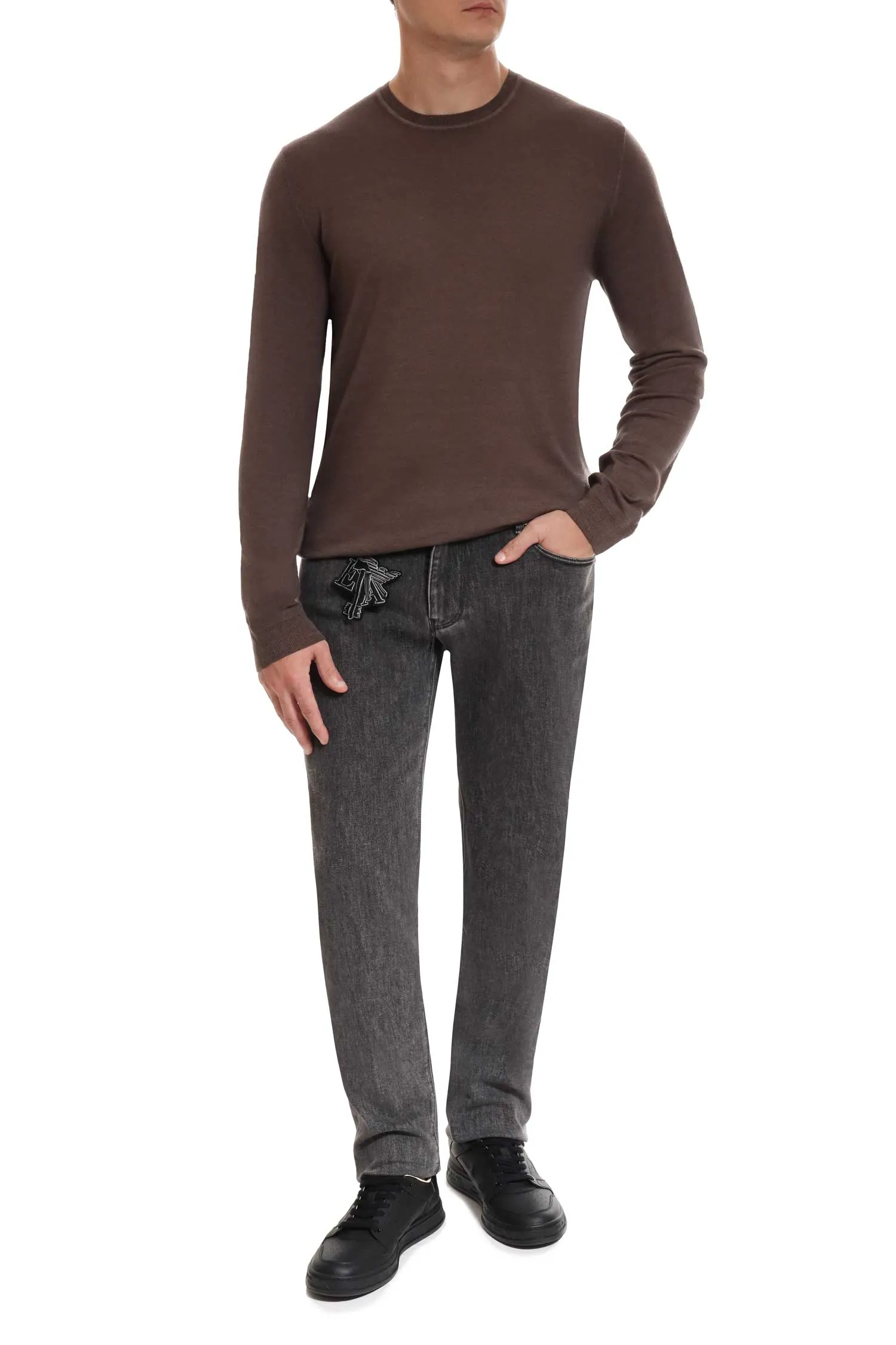 EMPORIO ARMANI ДЖИНСЫ SLIM СЕРЫЕ, ВЫБЕЛЕННЫЕ, МЯГКИЙ БРЕЛОК В ФОРМЕ КЛЮЧЕЙ С ЛОГО, Ш=17,5