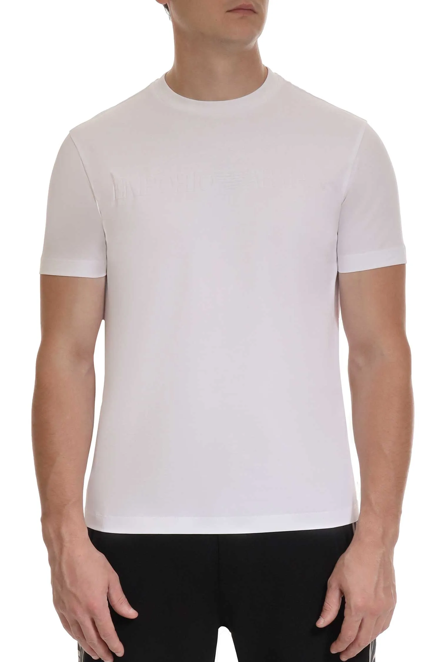 ФУТБОЛКА БЕЛАЯ, НА ГРУДИ ВЫБИТАЯ ЛОГО-НАДПИСЬ В ТОН