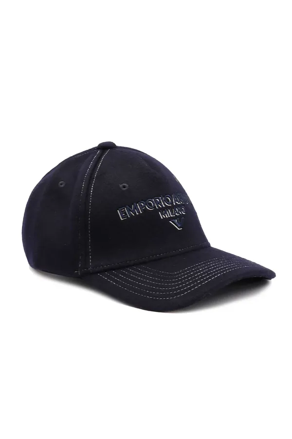 БЕЙСБОЛКА Т/СИНЯЯ ШЕРСТЬ, ЛОГО-НАДПИСЬ В ТОН, БЕЛАЯ ОТСТРОЧКА