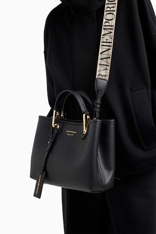 СУМКА-ШОПЕР MYEA S ЧЁРНАЯ ЭКОКОЖА, ТЕКСТИЛЬН.РЕМЕНЬ В ЛОГО В ТОН