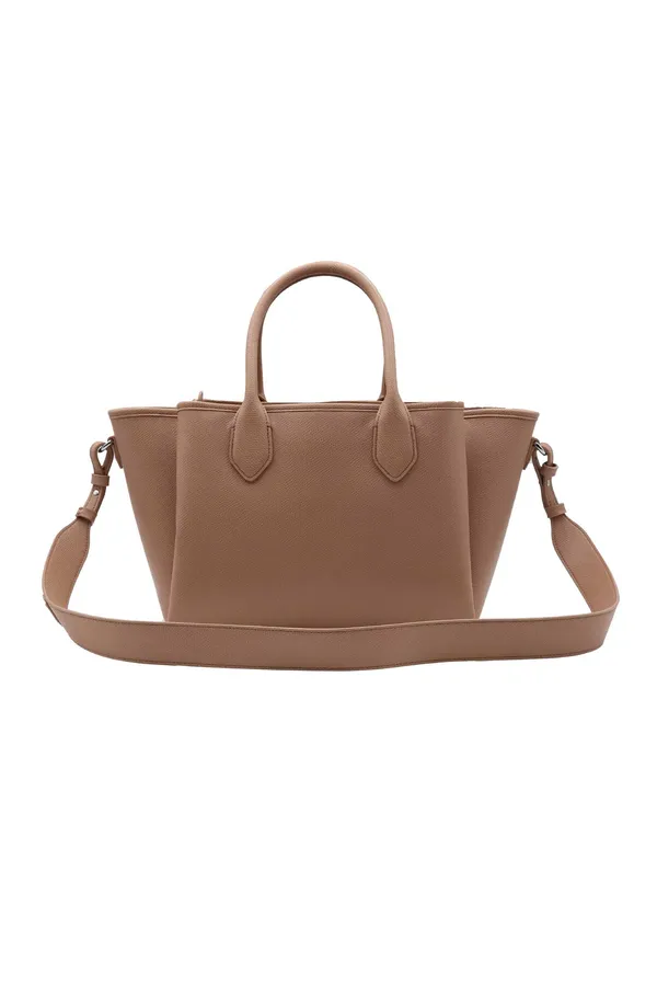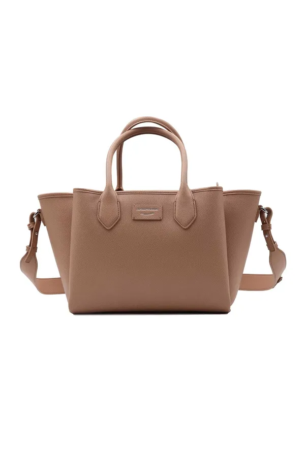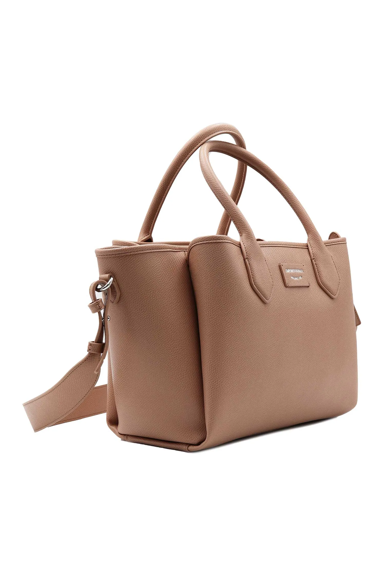 СУМКА-ТОУТ БЕЖЕВО-КОРИЧНЕВАЯ S, НАШИВКА-ЛОГО, МАГНИТНАЯ ЗАСТЁЖКА