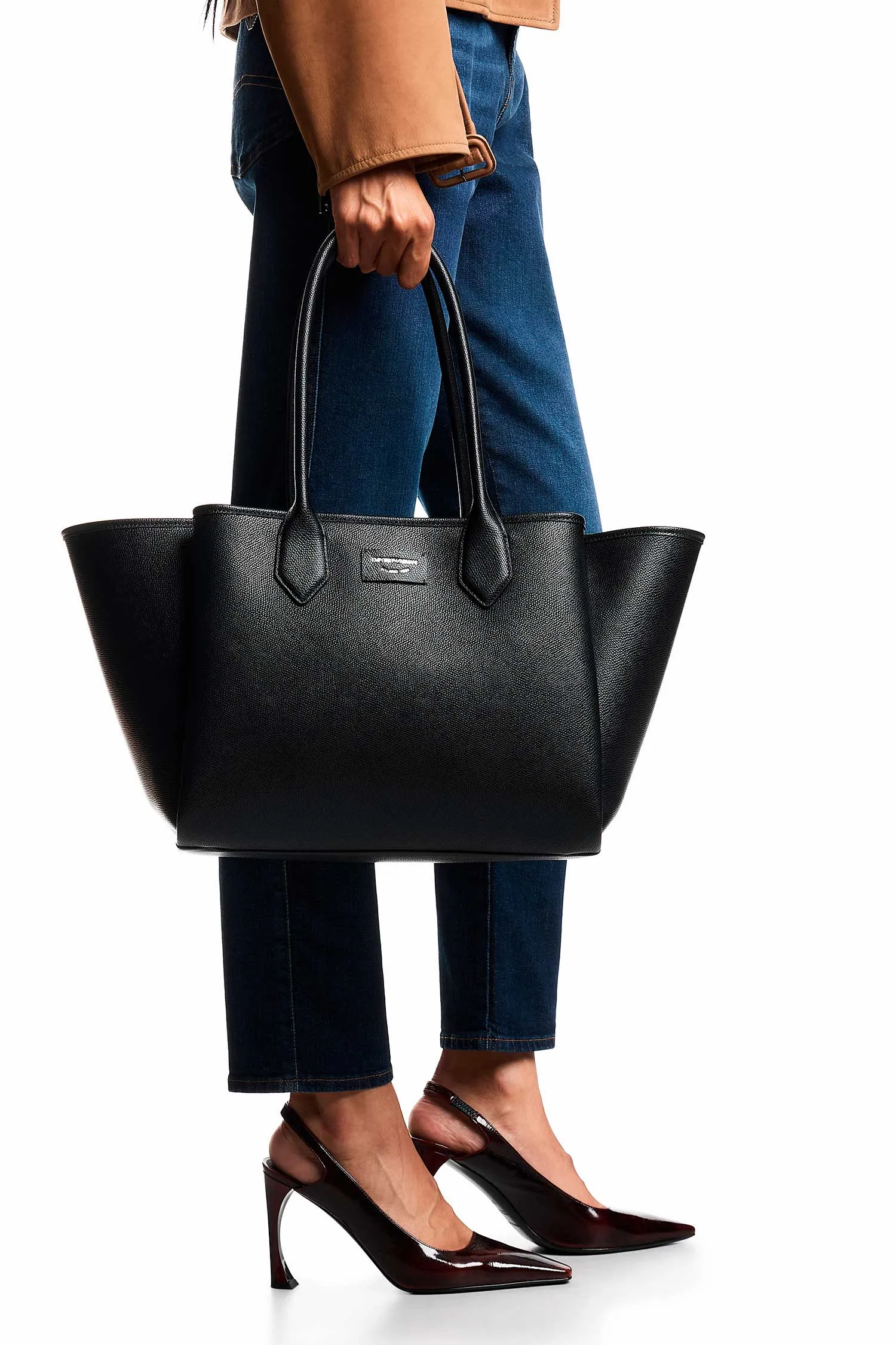 СУМКА-ТОУТ ЧЁРНАЯ M, НАШИВКА-ЛОГО, МАГНИТНАЯ ЗАСТЁЖКА