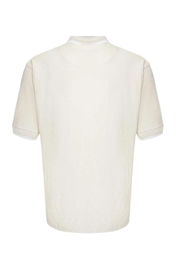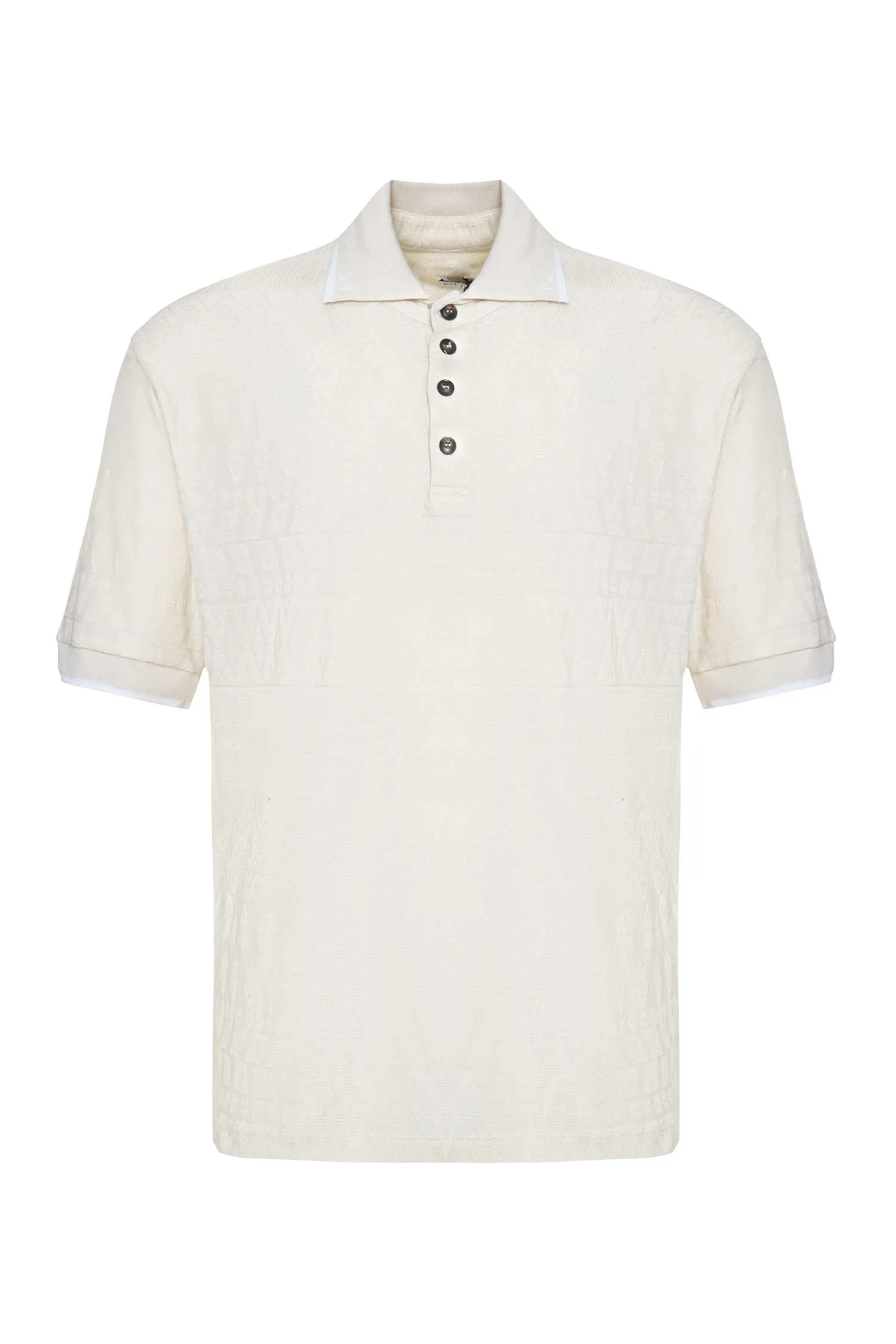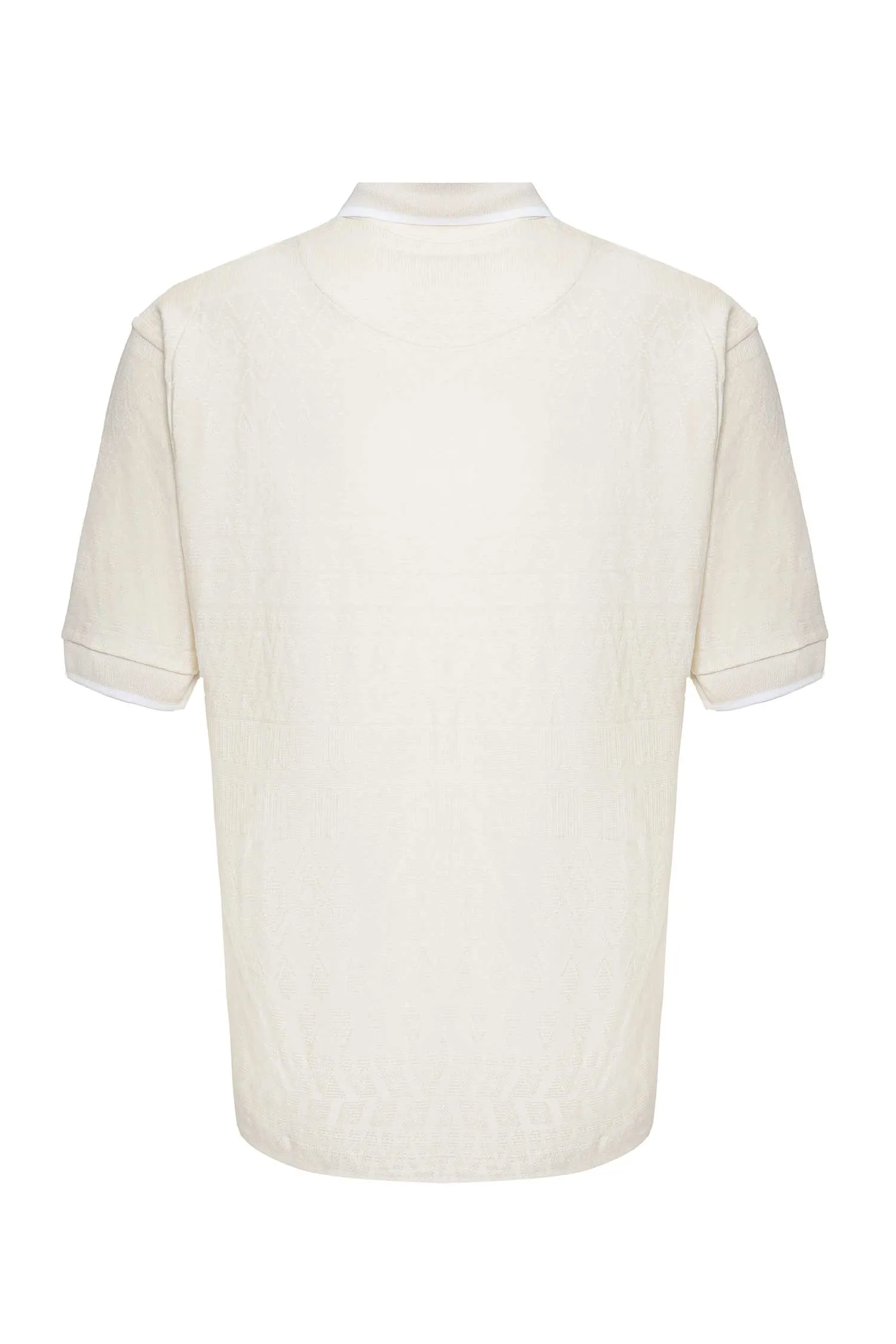 PAL ZILERI ДЖЕМПЕР-ПОЛО M.228 МОЛОЧНЫЙ ЛИОЦЕЛЛ/ШЕРСТЬ, ПРИНТ УЗОРЫ В ТОН, БЕЛАЯ ПОЛОСА НА ВОРОТНИКЕ