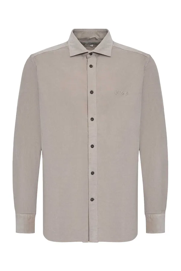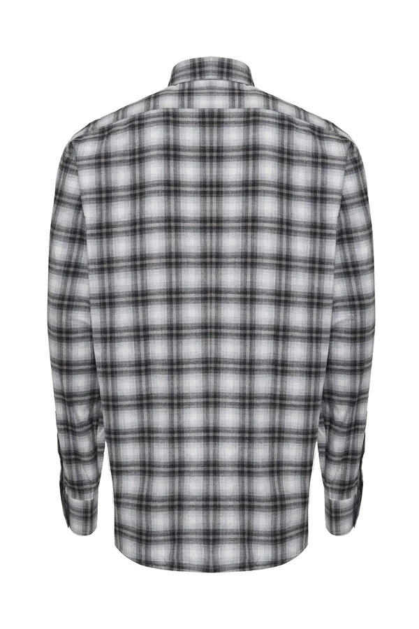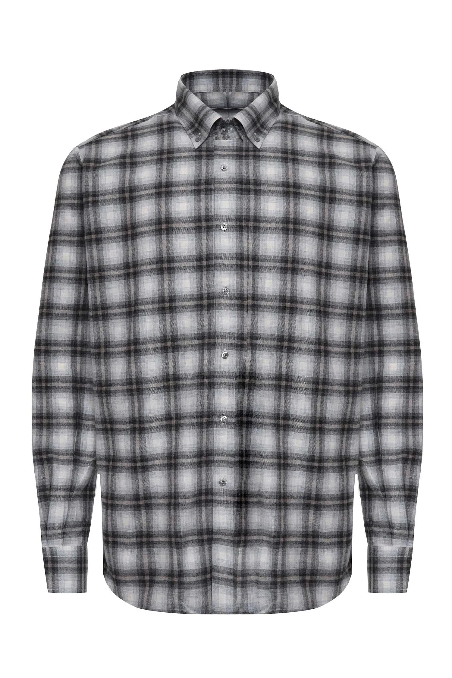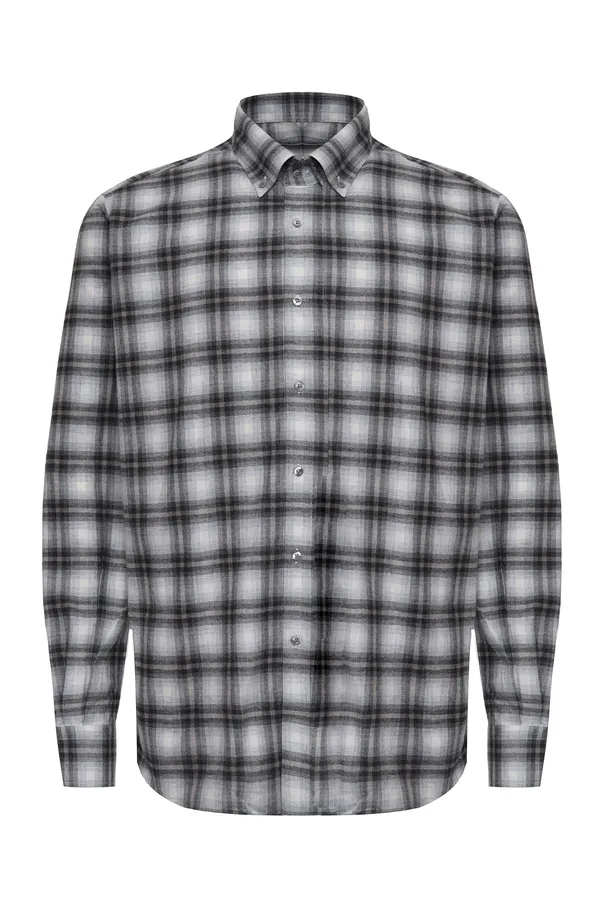 РУБАШКА СЕРО-БЕЖЕВО-МОЛОЧНАЯ В КЛЕТКУ, ФЛАНЕЛЬ