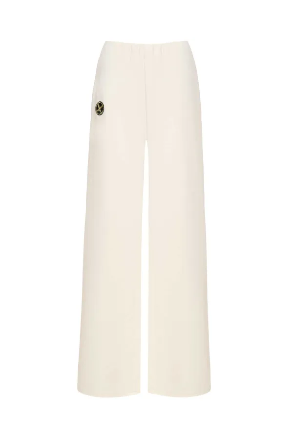 ШТАНЫ M.007 МОЛОЧНЫЕ, СВОБОДНЫЕ, БЕЗ ПОЯСА, СЗАДИ КАРМАНЫ, НАШИВКА-ЛОГО