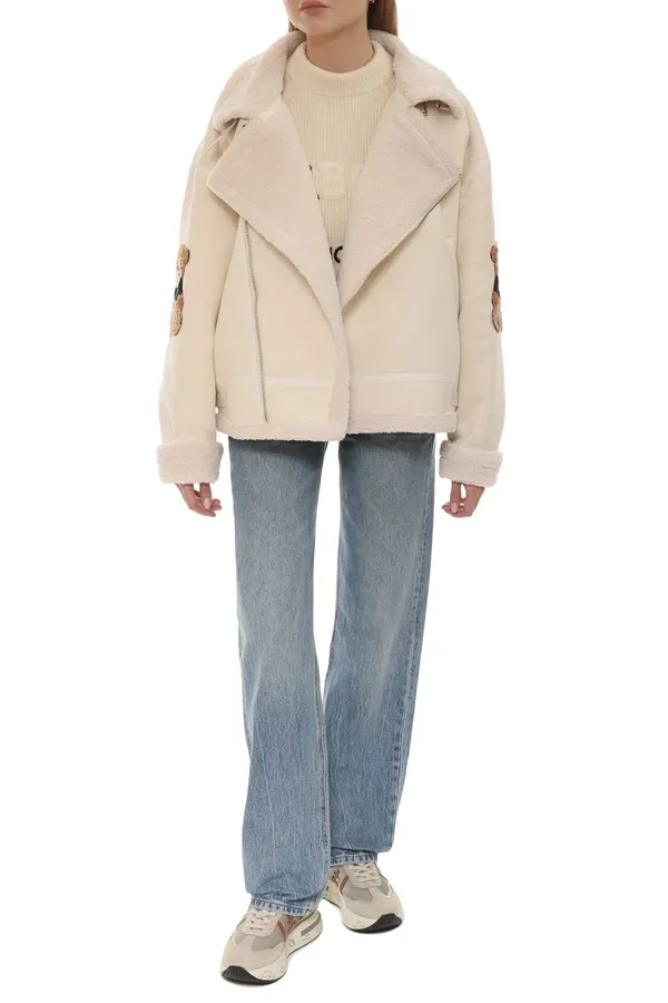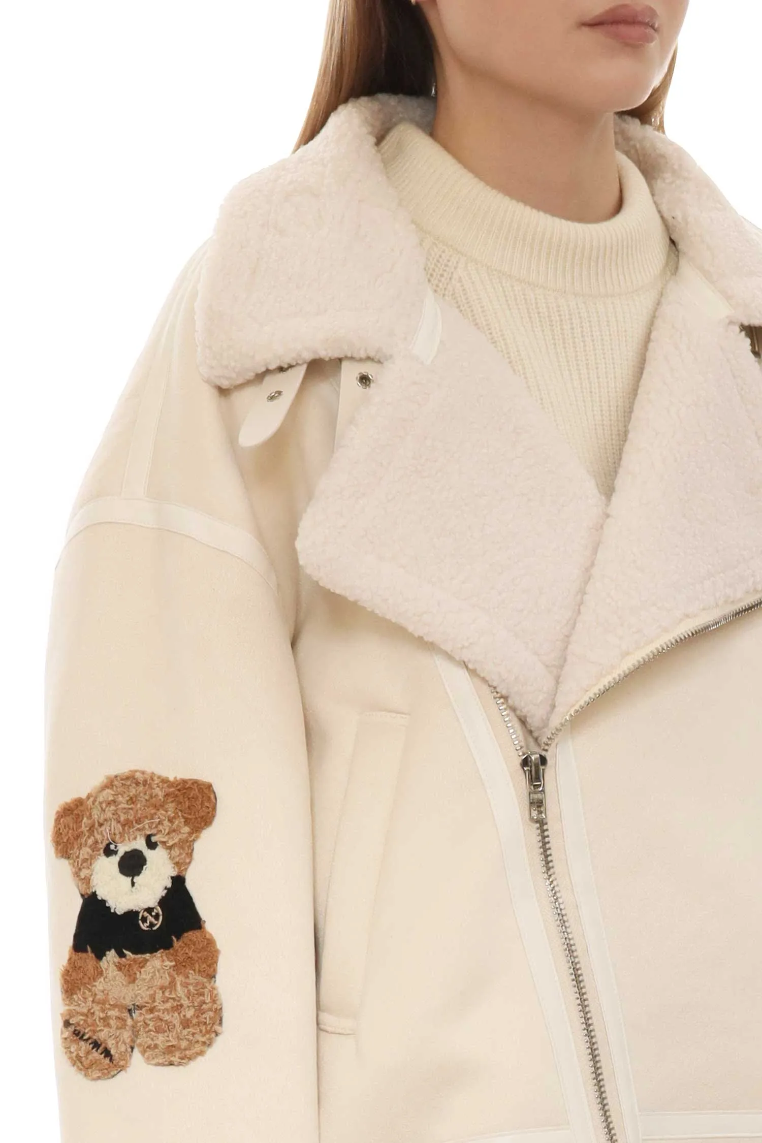 ДУБЛЁНКА-КОСУХА M.075 МОЛОЧНАЯ, НА СПИНЕ И РУКАВАХ КОРИЧНЕВЫЕ НАШИВКИ МИШКИ