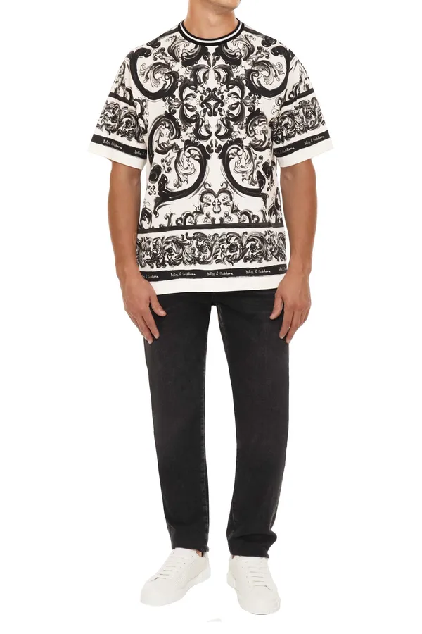 ФУТБОЛКА ЧЁРНО-БЕЛАЯ, ПРИНТ МАЙОЛИКИ