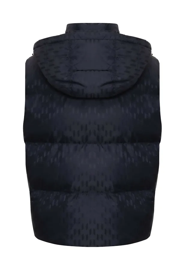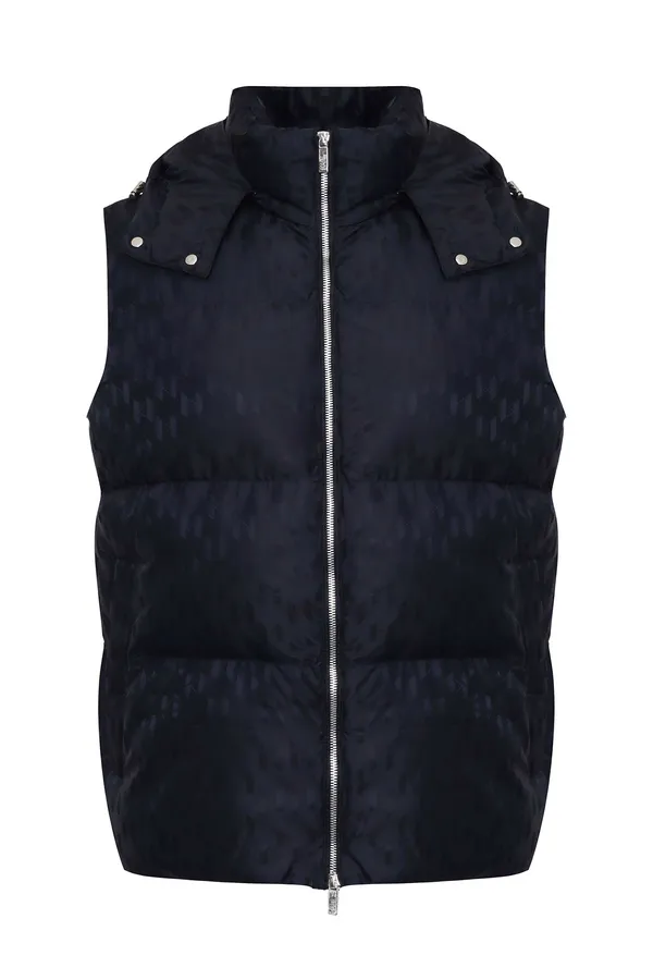 ЖИЛЕТ Т/СИНИЙ В ЛОГО, СТЁГАНЫЙ, КАПЮШОН, ВОРОТ-СТОЙКА