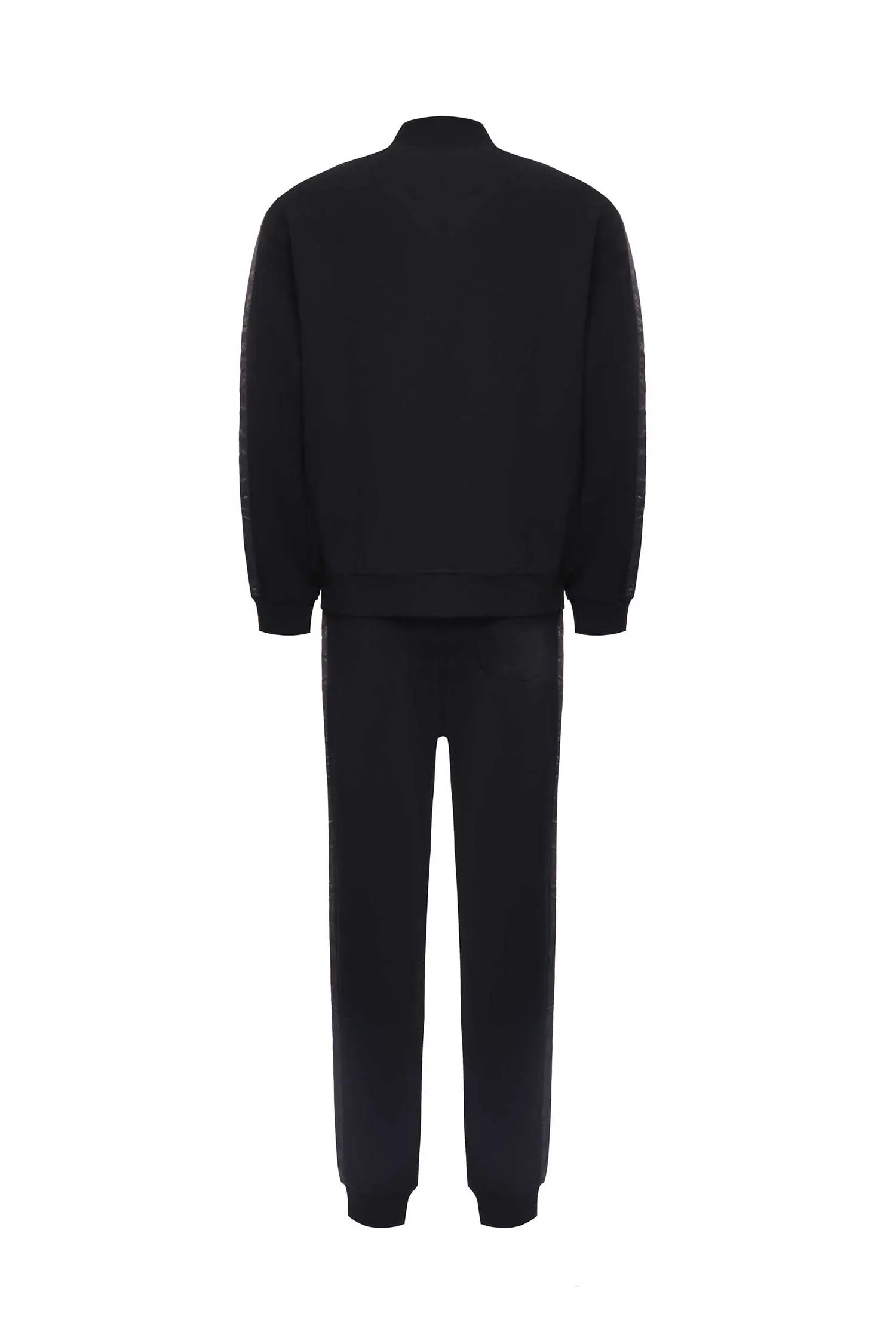 КОСТЮМ ЧЁРНЫЙ, ОЛИМПИЙКА+ШТАНЫ НА КУЛИСКЕ, НЕЙЛОНОВЫЕ ЛАМПАСЫ В ЛОГО, ВОРОТ-СТОЙКА, СНИЗУ МАНЖЕТЫ