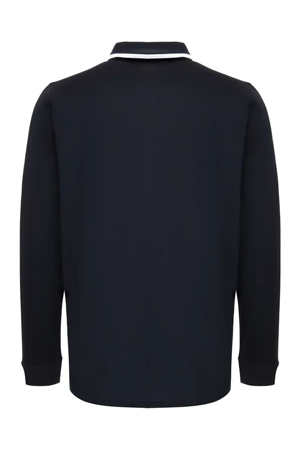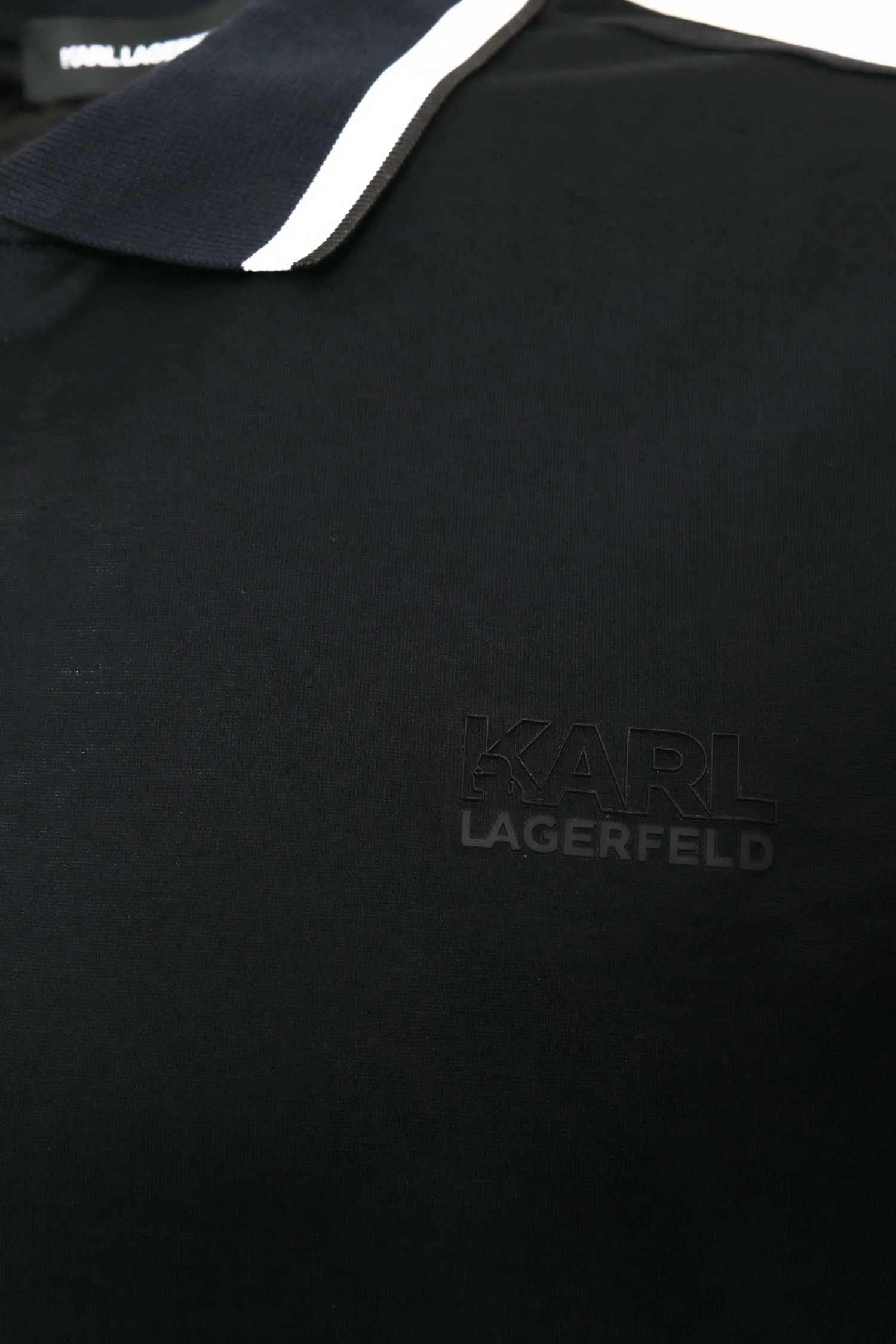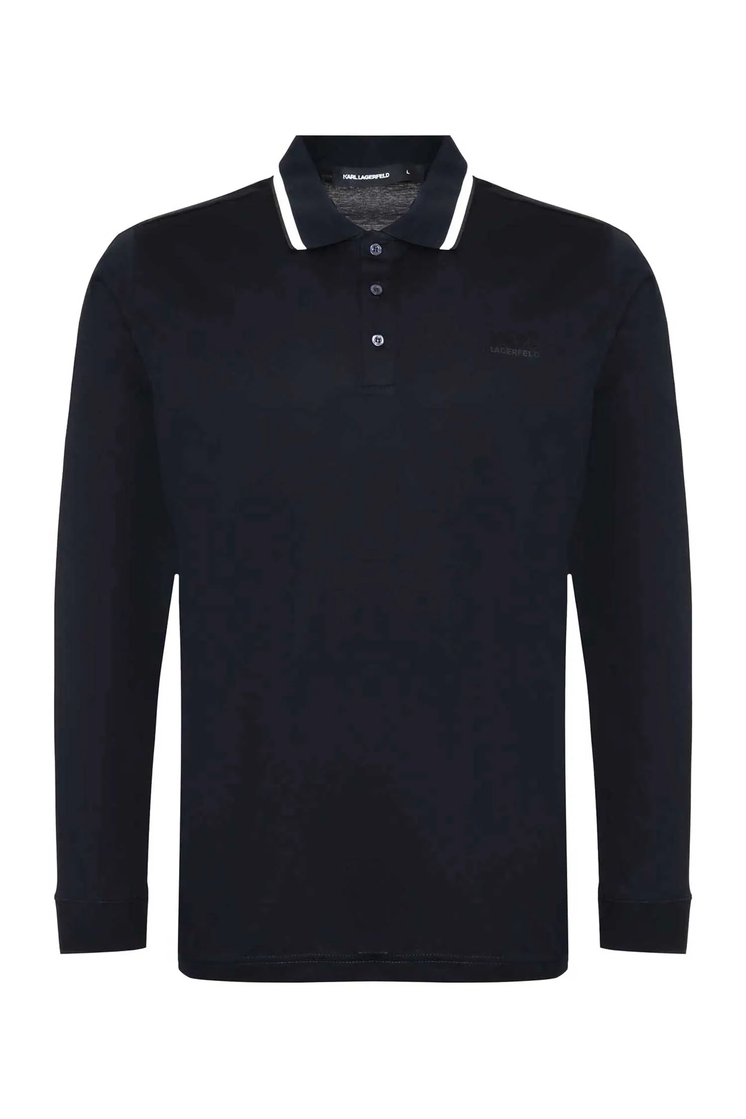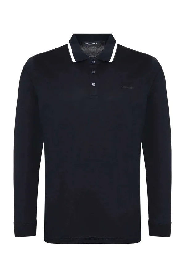 KARL LAGERFELD ПОЛО Т/СИНЕЕ, НА ГРУДИ ПРОРЕЗИНЕН.ЛОГО-НАДПИСЬ, БЕЛАЯ ПОЛОСА НА ВОРОТНИКЕ, ДЛ/РУК.